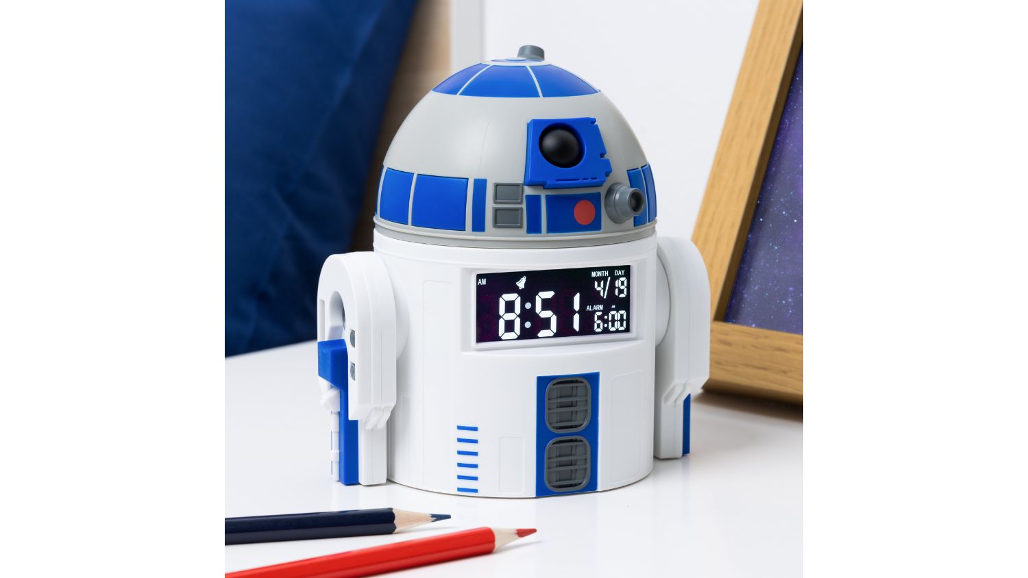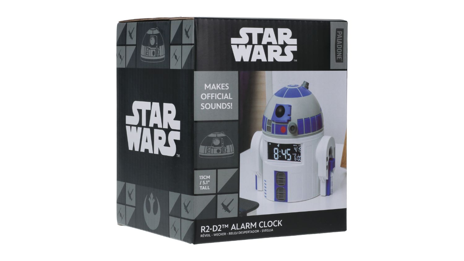 Bring the magic of Star Wars to your mornings with the Paladone Novelty Alarm Clock featuring the iconic droid, R2-D2. This officially licensed alarm clock stands 13 cm tall. It displays the time and date digitally and wakes you up with its unique sounds. Powered by the included USB cable, this collectible is a must-have item and a fantastic gift for Star Wars fans.