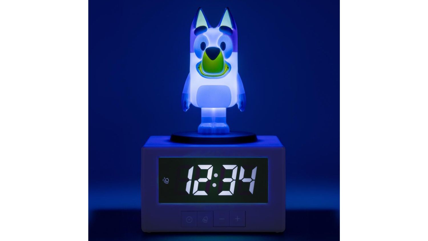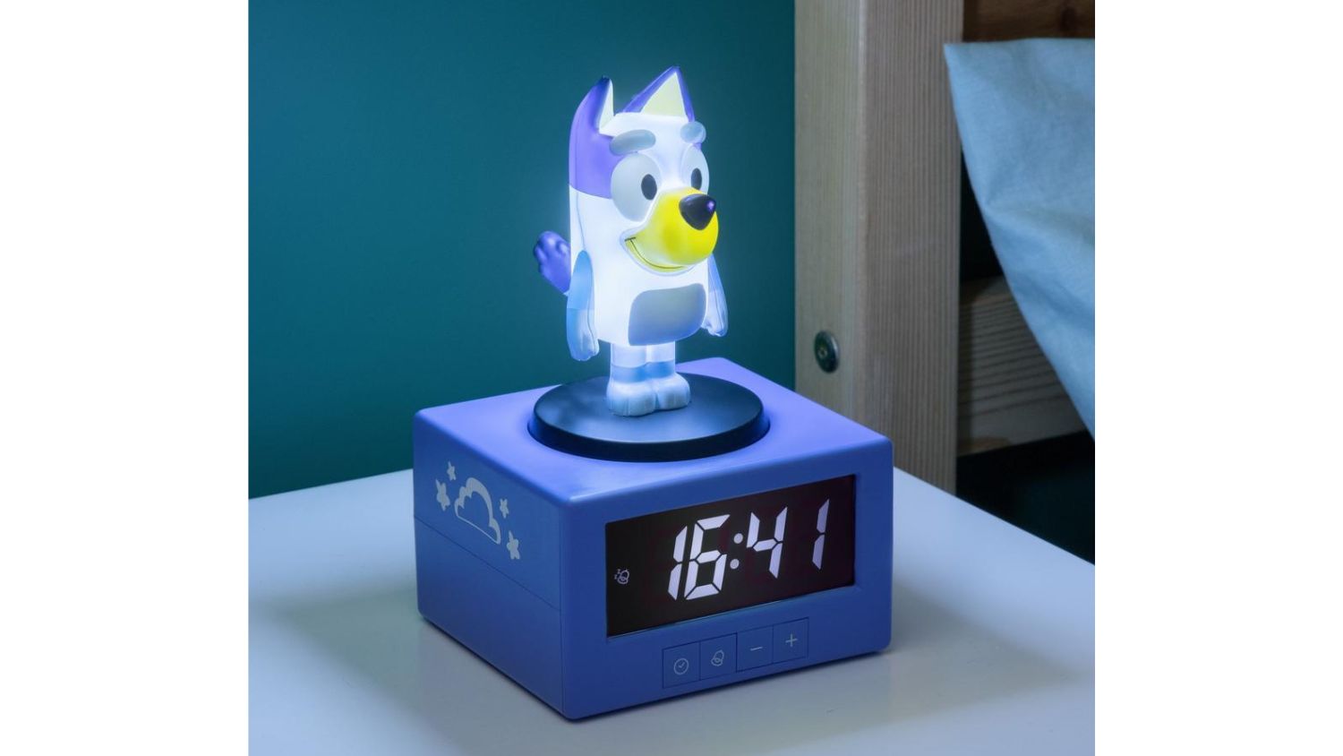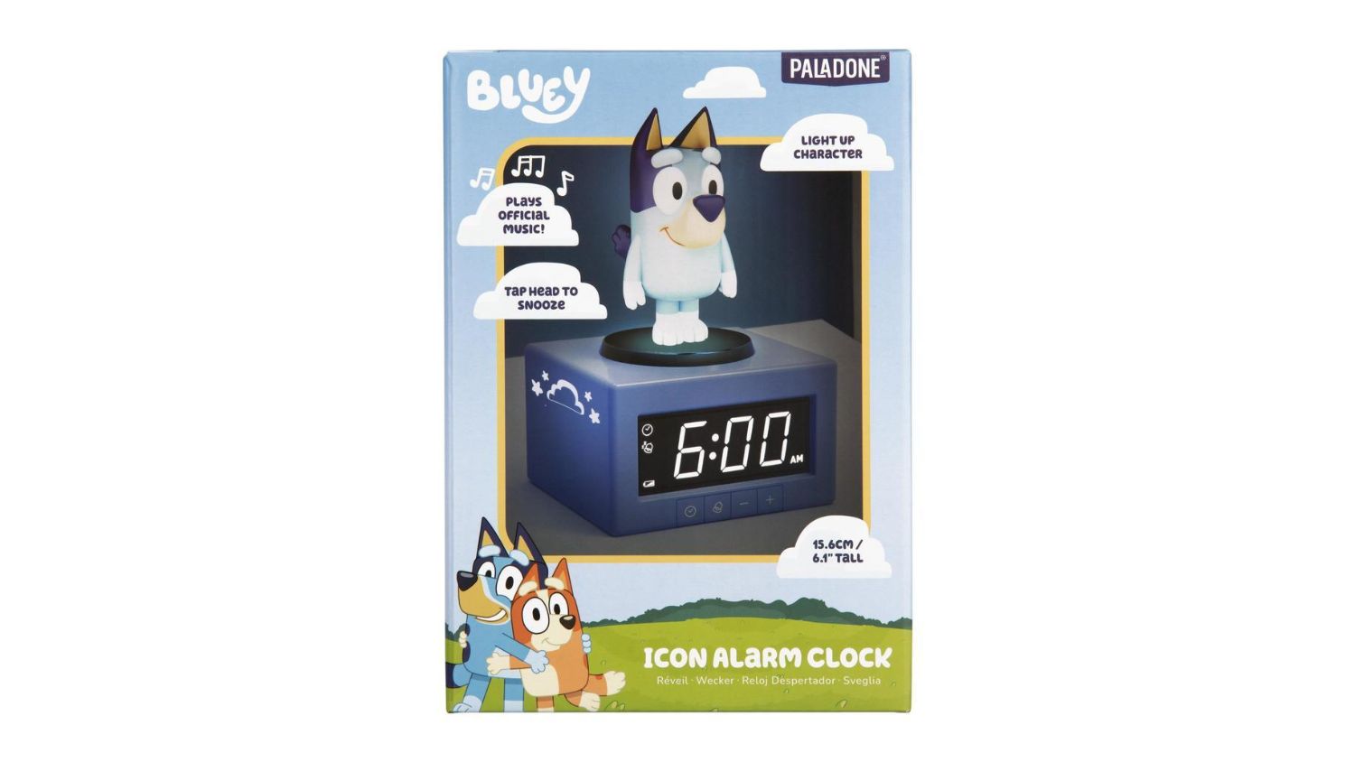 Make wake-up time fun with the Paladone Novelty Icon Alarm Clock featuring Bluey. Standing at 15.6 cm tall, the officially licensed clock plays the show's official theme song to start the day right. Simply tap her head to snooze or to activate the night light function. It makes a fun addition to any child's bedroom and is a perfect gift for Bluey fans.