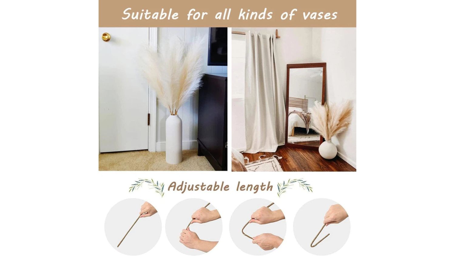 Add an artistic atmosphere and stylish freshness to your home with the Pretty & Practical Decorative Pampas Grass Mats. This safe, non-toxic Boho chic decor lets you create stunning, unique arrangements. The grass can be easily trimmed to fit in a glass vase, perfect for weddings, parties, or living room decor.