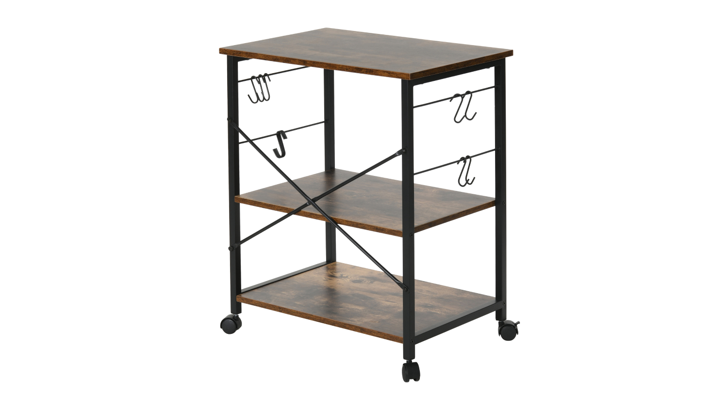 Sherwood Rustic Wooden 3 Shelf Serving Trolley - Dark Timber/Black