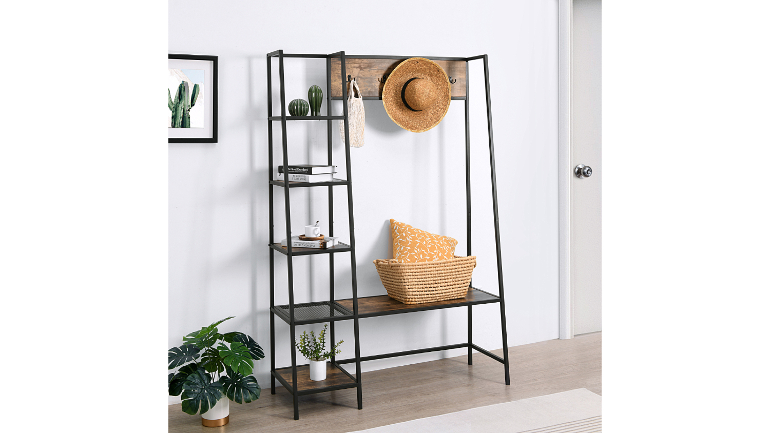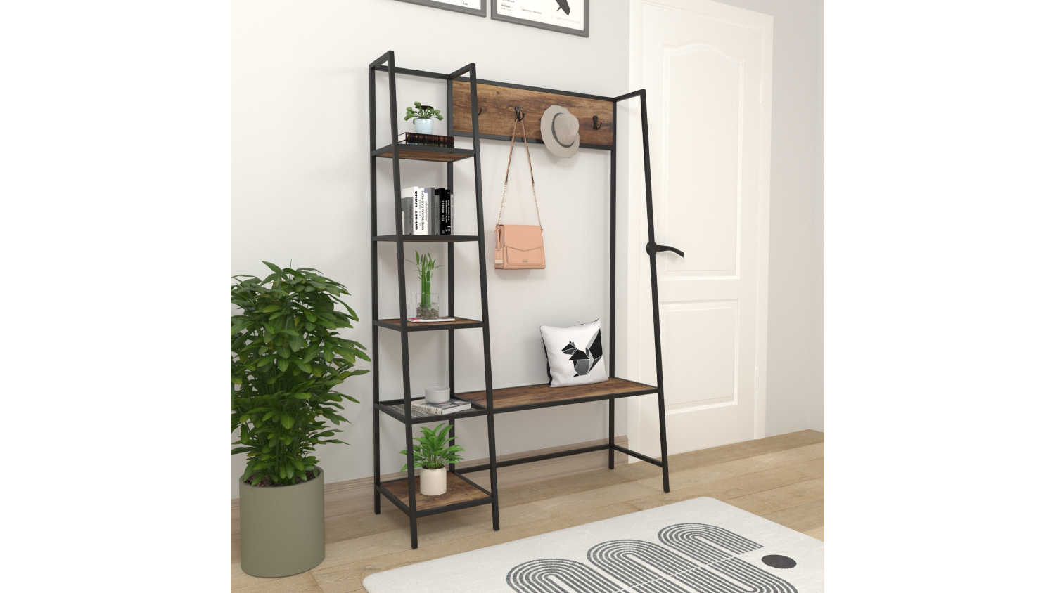 Sherwood Rustic Wooden Cloakrack & Shelf - Dark Timber/Black