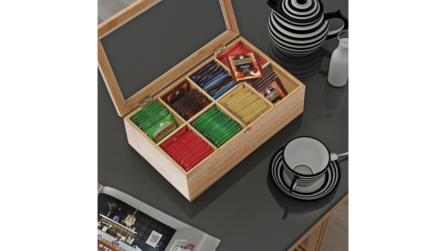 Organise your tea sanctuary with the Sherwood 8 Compartment Bamboo Tea Box, a tasteful blend of elegance and practicality. Crafted from premium bamboo and featuring a sleek acrylic window lid, this tea box is a storage solution and a statement piece for your kitchen.