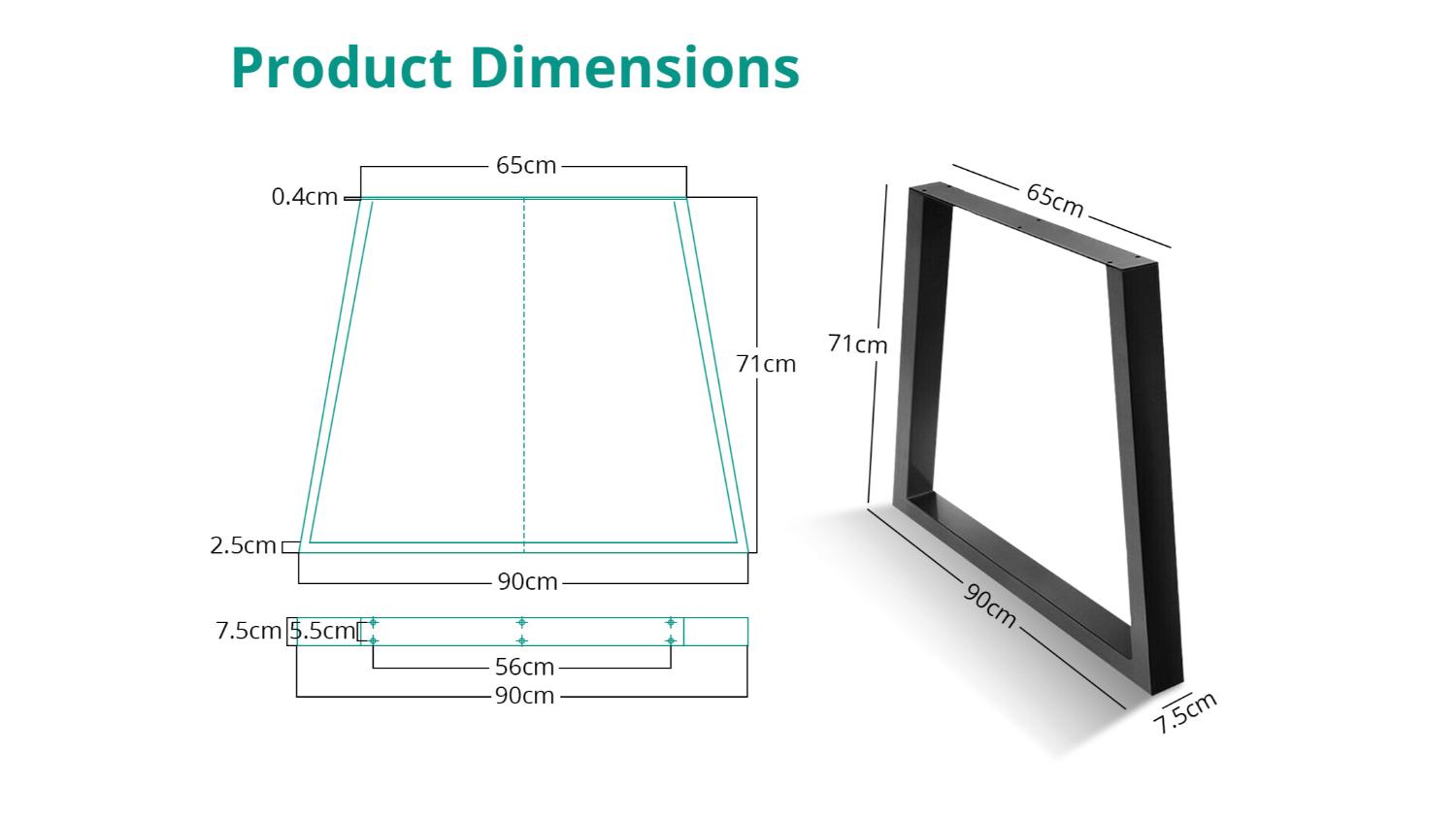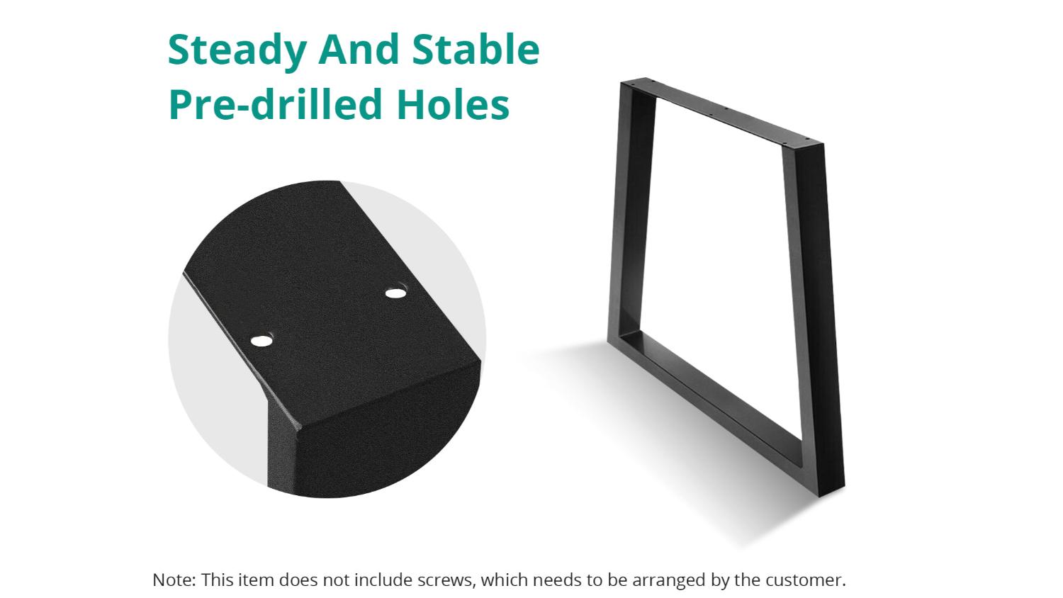 Elevate your interior aesthetics with the TSB Living Bottom-Heavy Trapezoid Table Leg with Pre-Drilled Holes 2pcs.! These metal legs, coated with a tough anti-rust powder finish, bring an on-trend industrial edge to any ensemble. Crafted from premium steel, they are as robust as they are stylish. The pre-drilled holes at the top ensure a hassle-free attachment to your tabletop, making your customisation dreams a reality. Whether it's a writing desk, coffee table, dining table, or bench, these legs provide the unique support your furniture deserves.