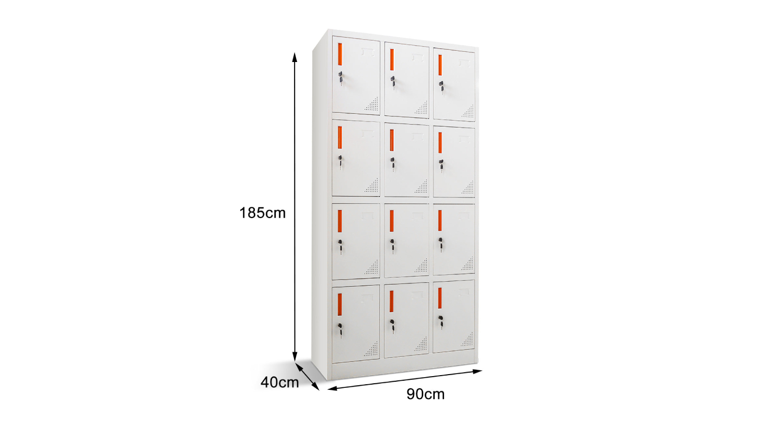TSB Living 12 Door Metal Locker Shelving Unit 90 x 40 x 185cm - White