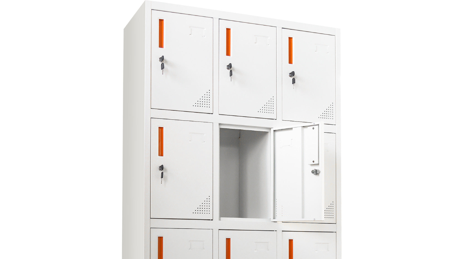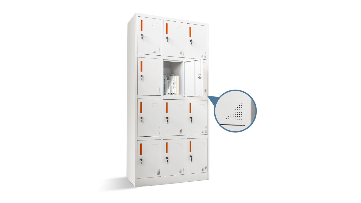 Discover the ultimate storage solution with the TSB Living 12-Door Metal Locker Shelving Unit! This nifty storage solution includes 12 lockers with two unique keys each, identity label slots, and air vents for ventilation. Crafted from powder-coated steel with a sleek matte finish, it adds a modern touch to any space.