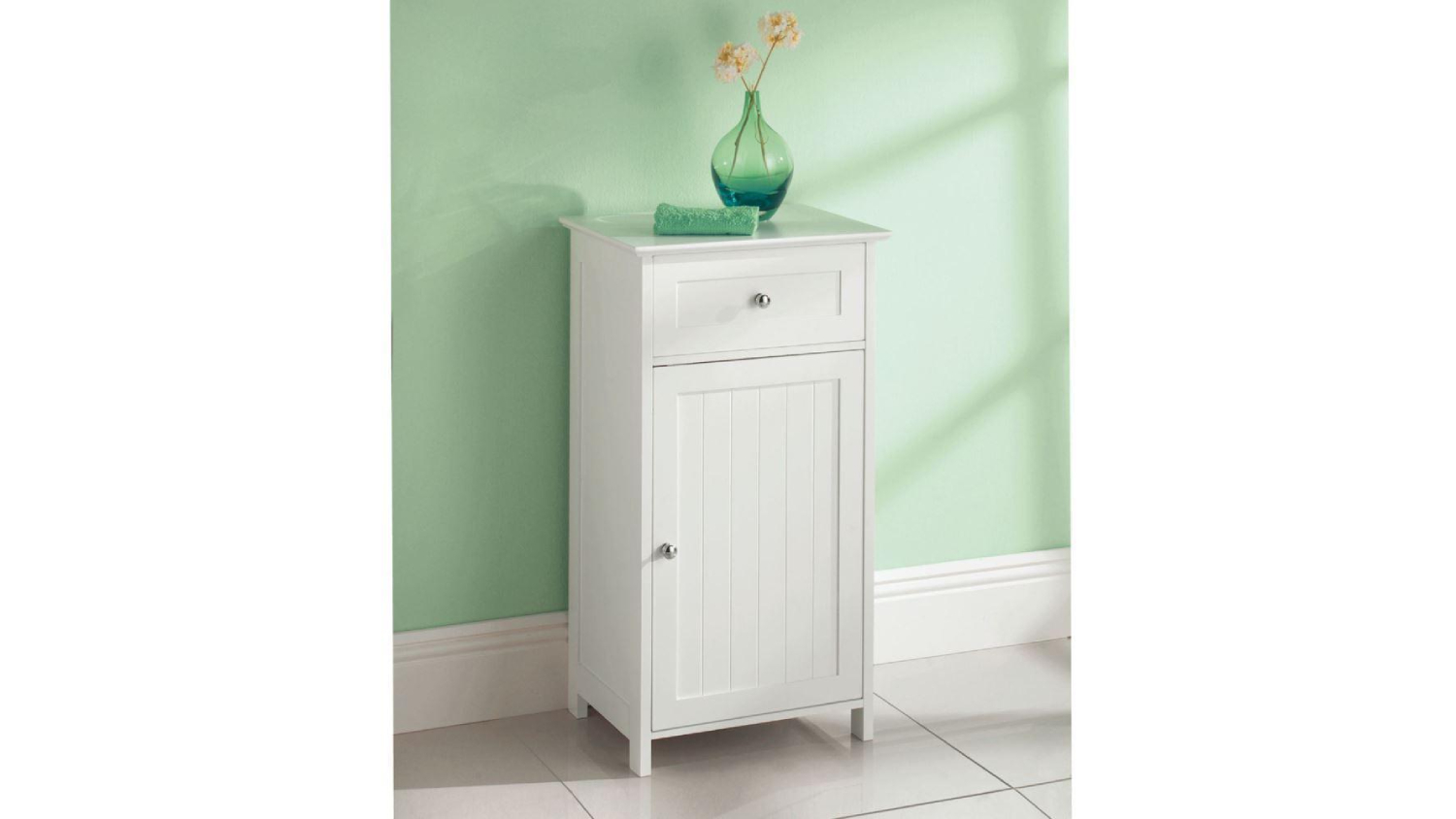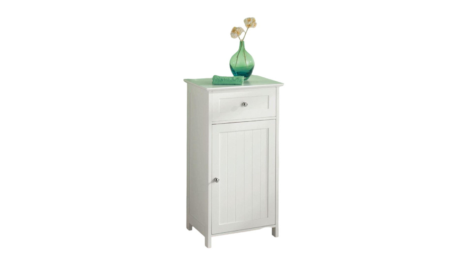 Simplify your bathroom storage with the TSB Living Elegant Side Cabinet with Drawer. Featuring a sturdy MDF construction with a chic white wood finish, this cabinet includes one door and one drawer, perfect for keeping your space clutter-free.