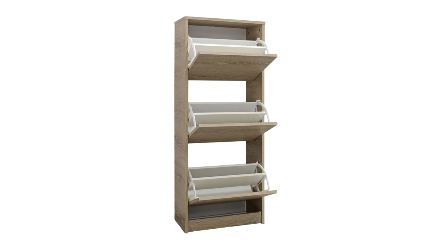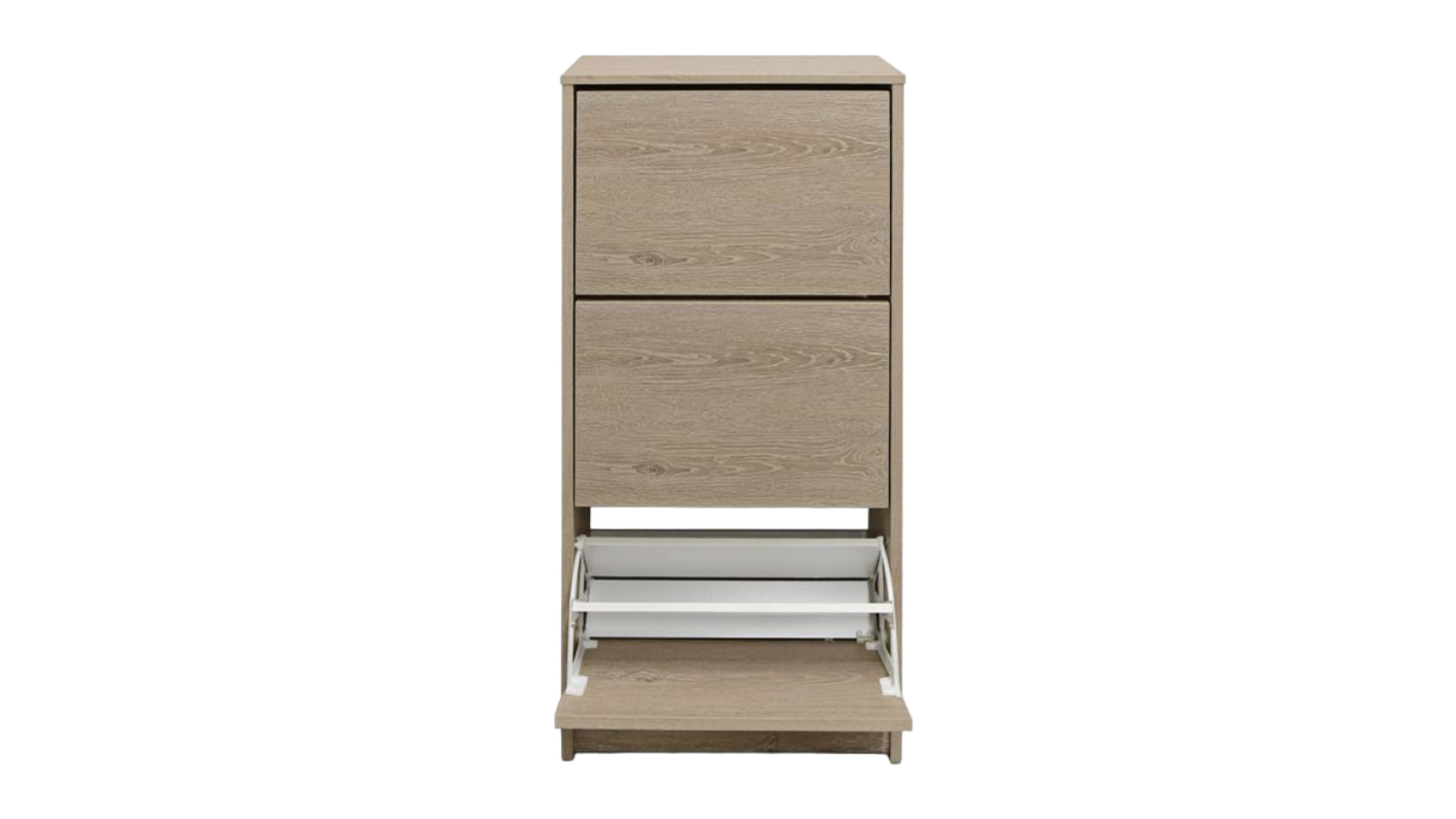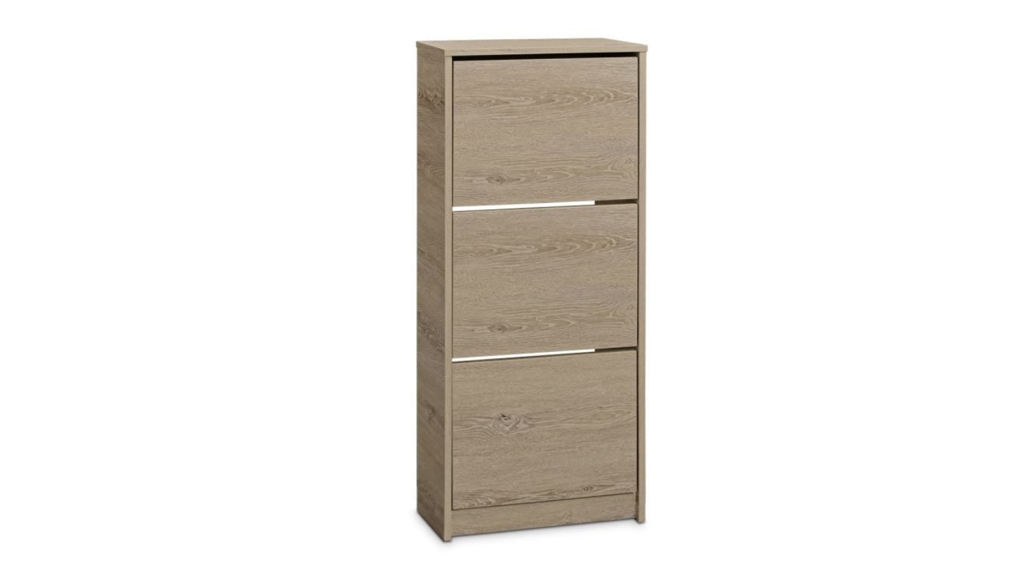 Offering exceptional storage capacity and versatility, The TSB Living "Enkel" 3-Drawer Tall Shoe Cabinet will transform your home into a haven of order and style! Its durable particle board with melamine construction ensures long-lasting performance, while its spacious interior, with three large storage cupboards, accommodates up to 12 pairs of shoes. Now you can keep your footwear neatly organised and out of sight.