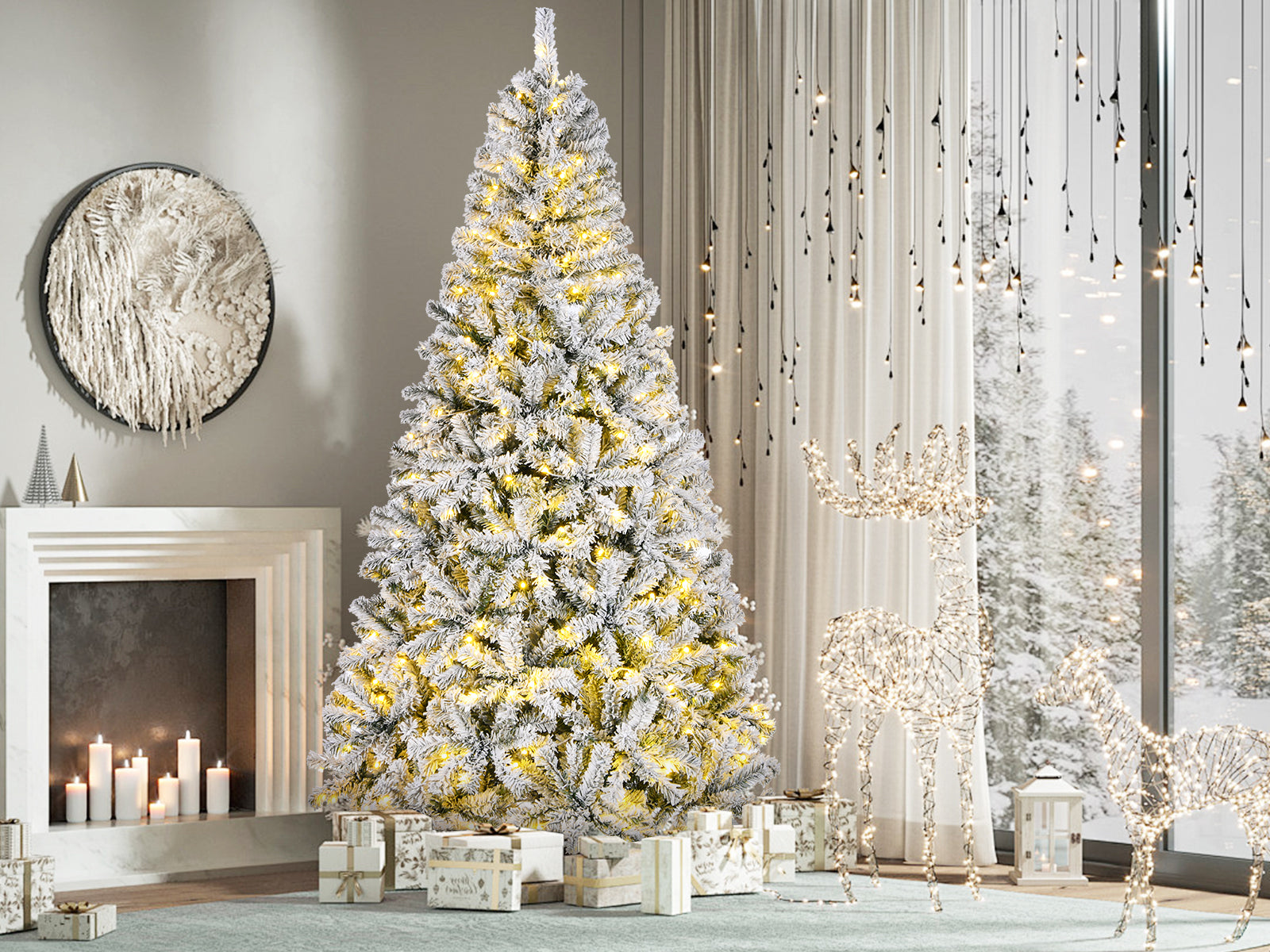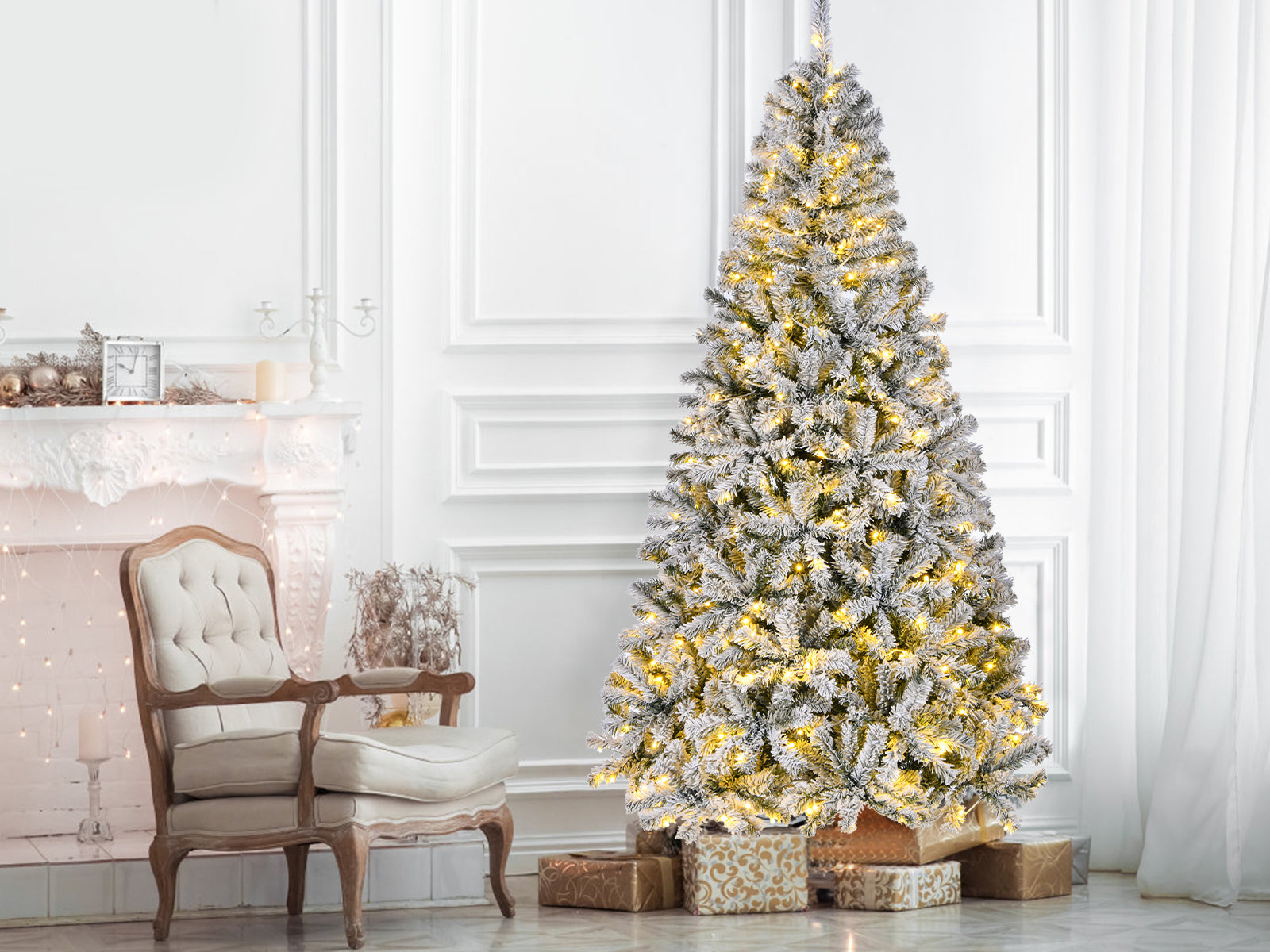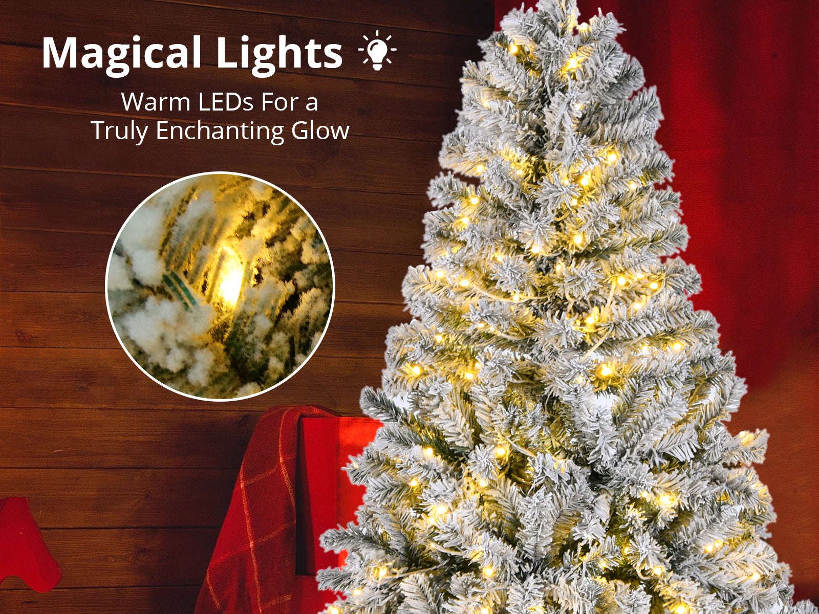 TSB Living Faux Christmas Tree with Flocked Frosted Tips, Warm LED Lights 180cm