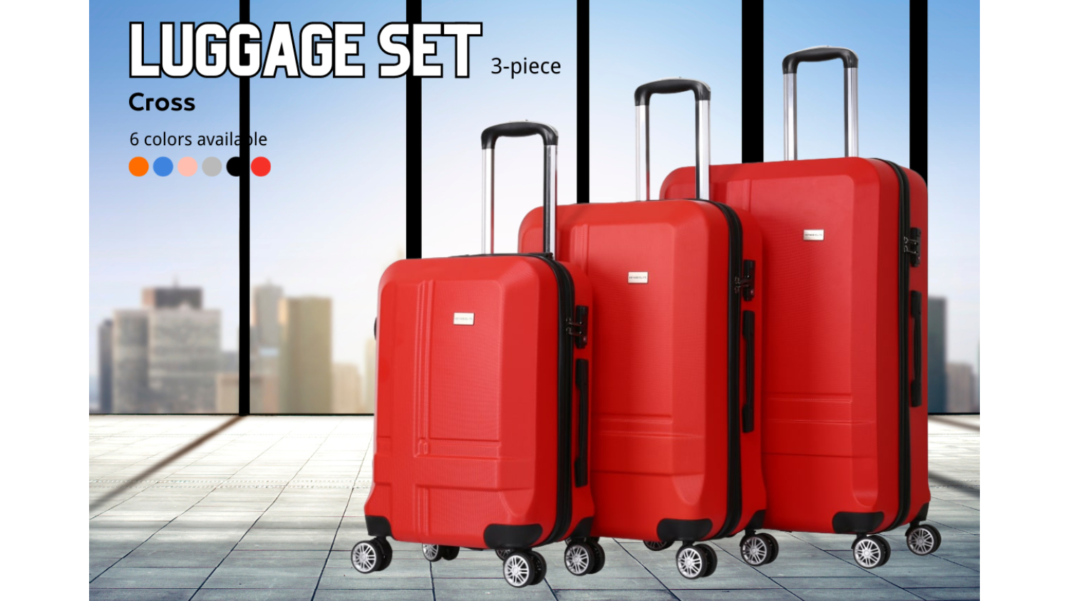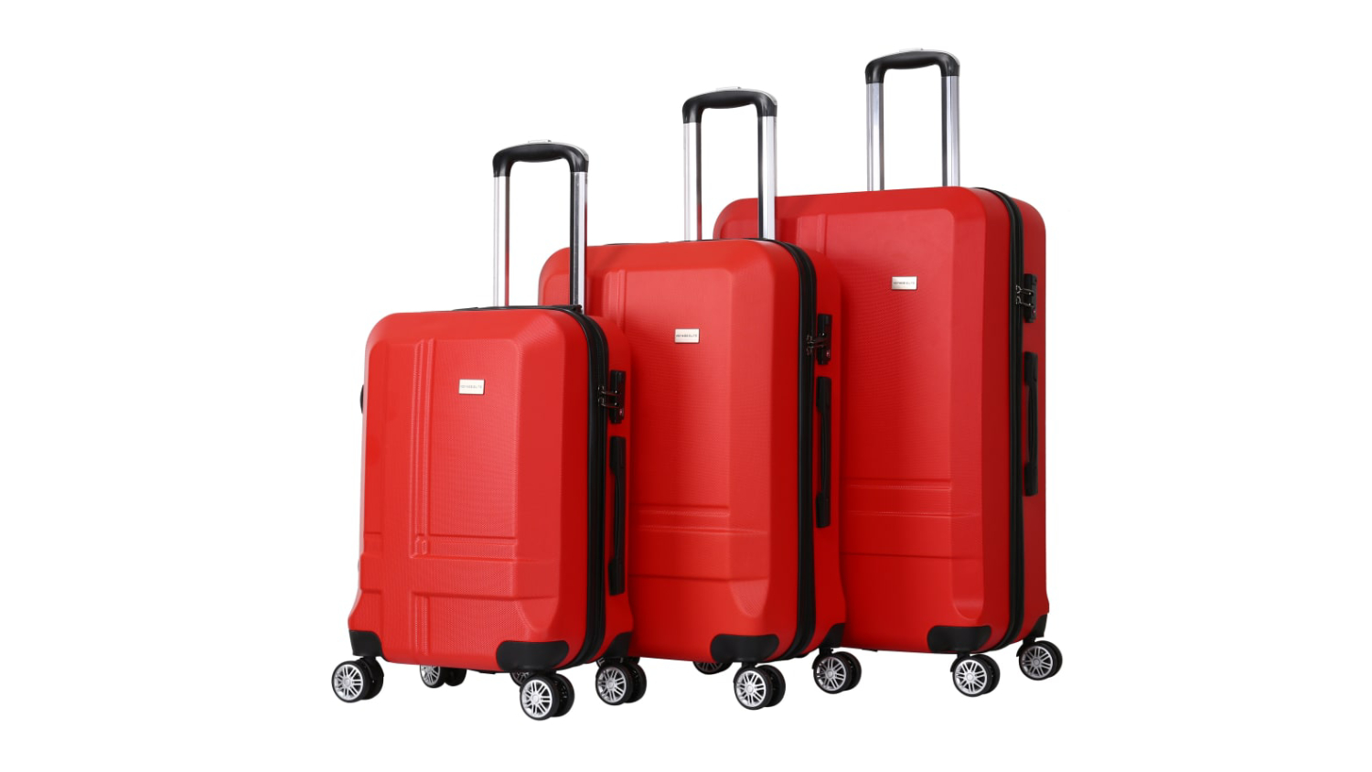 Travel in style with the TSB Living Hard-Shell Luggage Set 3pcs! These three pieces of luggage offer exceptional value with their thoughtful design and versatile sizes. Crafted with precision, each piece features a rugged ABS hard shell, ensuring your possessions remain safe and sound throughout your adventures. The aluminium handle strikes the perfect balance between sturdiness and lightweight ease, making manoeuvring through bustling terminals a breeze. It also features four double 360-degree rotating wheels that smoothly accompany you on your adventures and the TSA lock system that guarantees peace of mind.