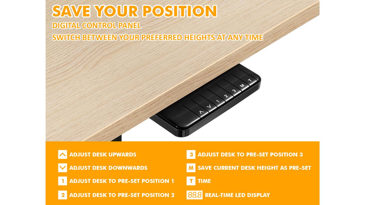 *TSB Living Height Adjustable Desk with Memory Black/Oak only. Desktops are sold separately.