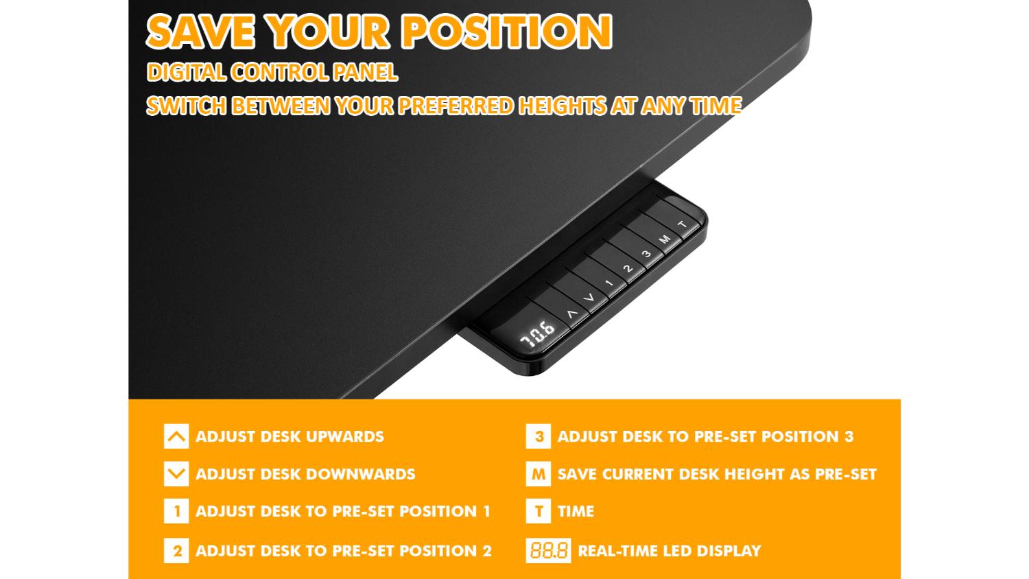Take control of your workspace with the TSB Living Height Adjustable Desk with Memory! Offering smooth motorised height adjustment, this desk allows you to effortlessly switch between sitting and standing positions throughout the day. With a user-friendly control panel, quiet operation, and a sturdy 100kg weight capacity, this desk offers both style and function.