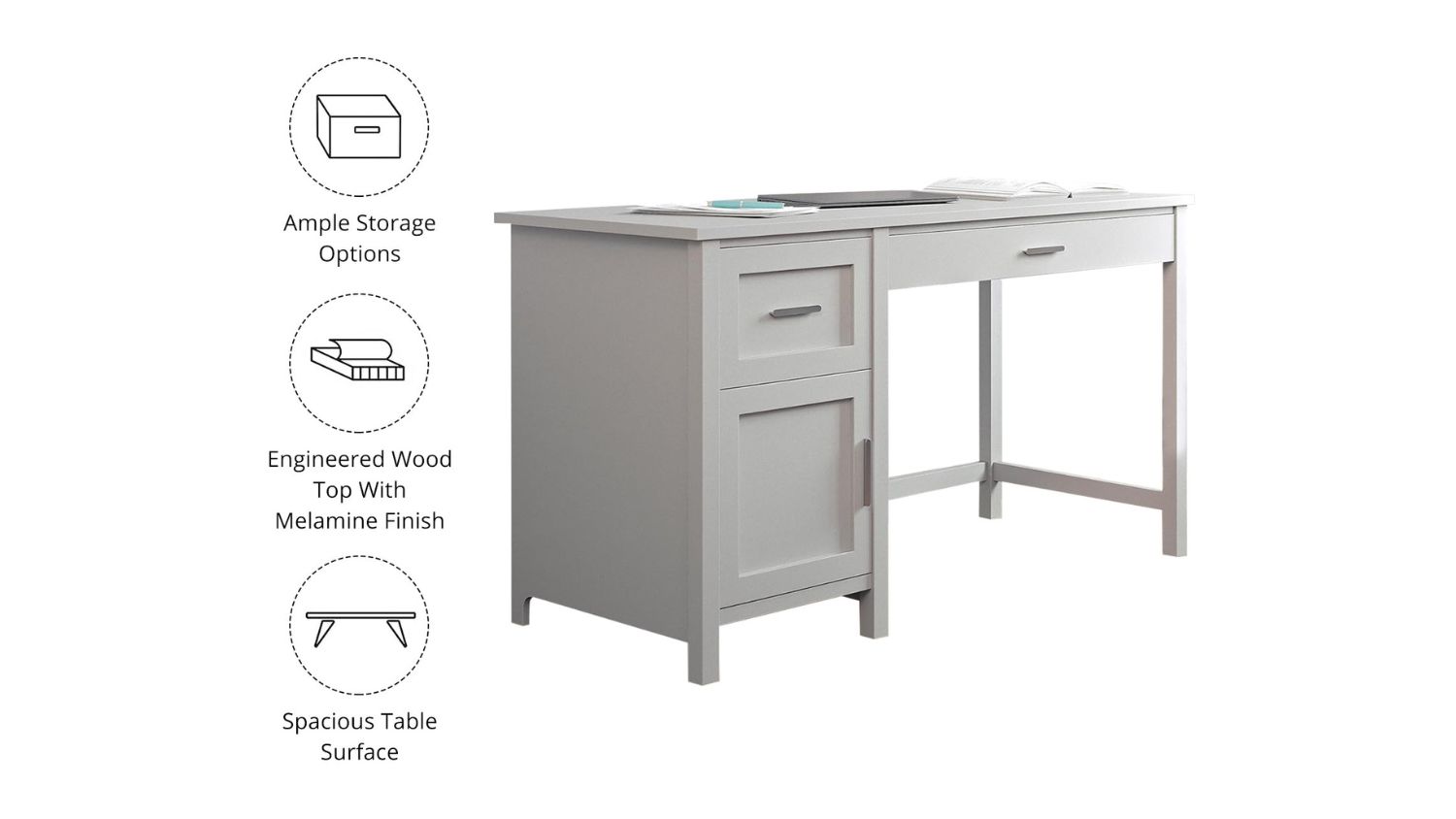 TSB Living Home Office Desk with Cabinet 137 x 58 x 76cm - Grey