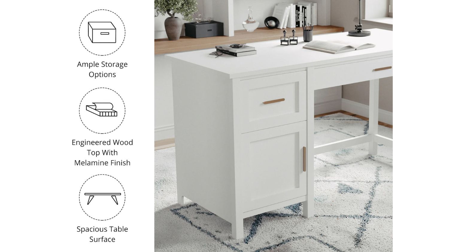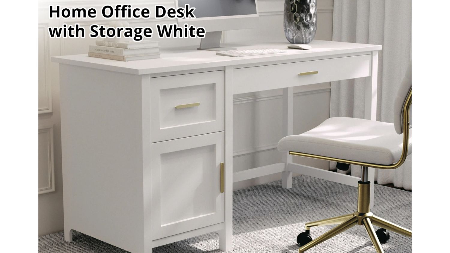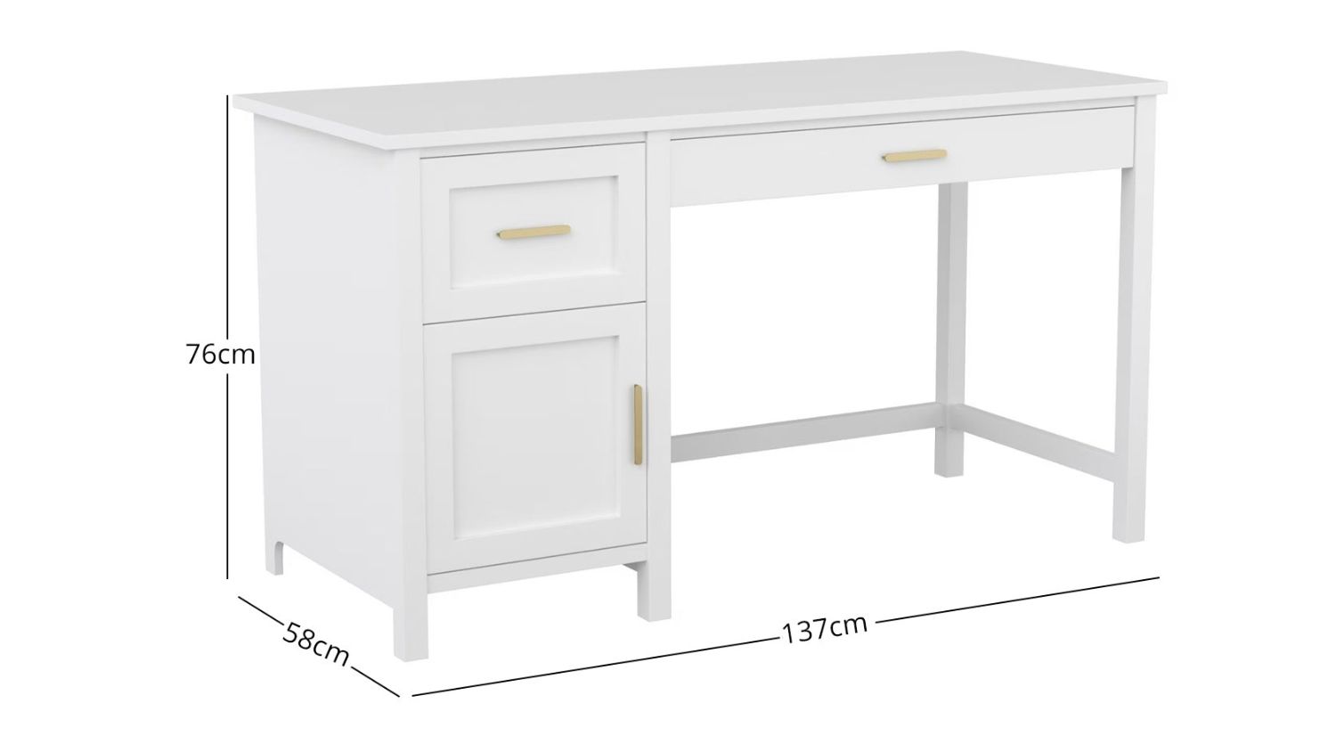 TSB Living Home Office Desk with Cabinet 137 x 58 x 76cm - White
