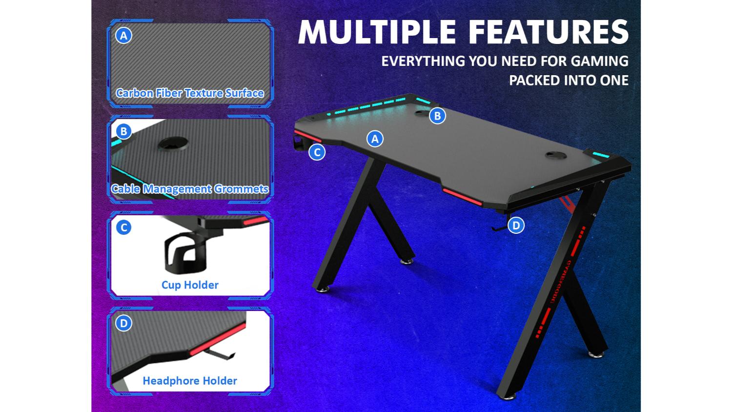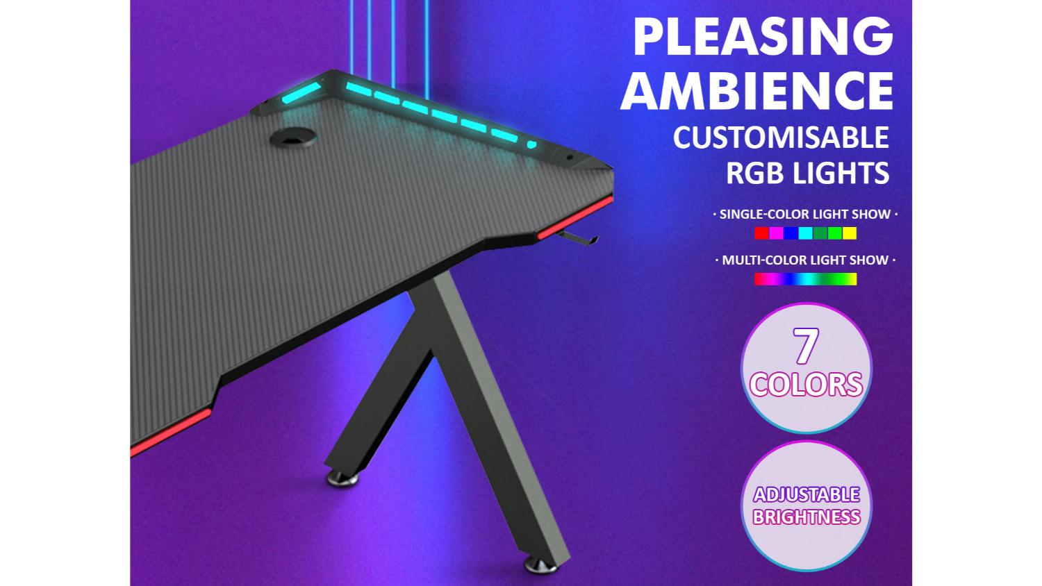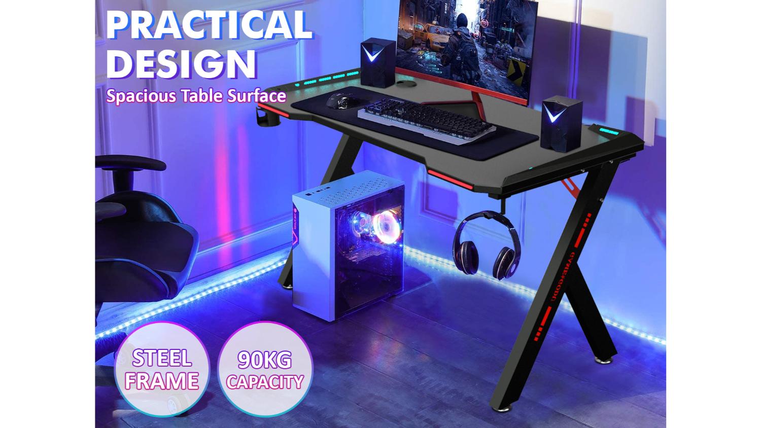 Upgrade your entertainment rig with the TSB Living R5 Gaming Table with Gamer LEDs and Headphone Hook! Featuring a stable R-shaped leg design, a spacious carbon fibre surface, and built-in RGB lighting, this desk is ready to add function and sleek illumination to your setup. It’s the perfect addition to your gaming room, study area, or workstation.
