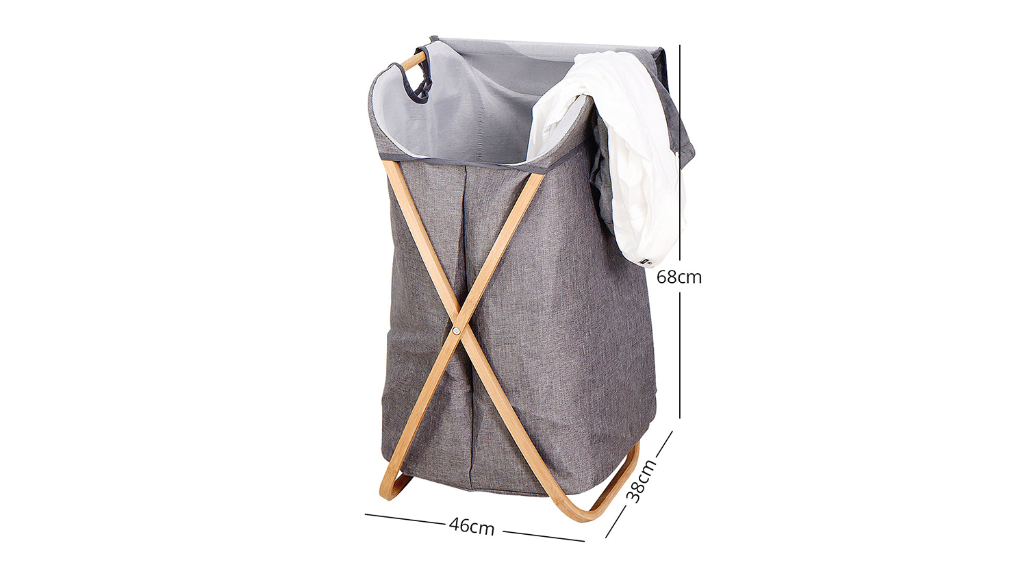 The TSB Living Sleek Laundry Hamper 46 x 36 cm combines practicality with style. Made from premium polyester linen and natural bamboo wood, this sturdy hamper is built to last. It also has a large capacity and a foldable, lightweight design, making it perfect for both laundry and picnic use.
