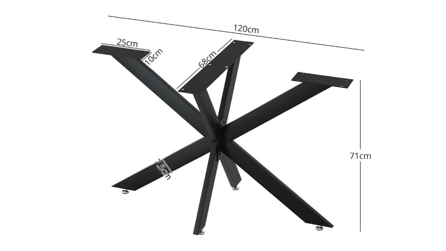 TSB Living Starburst Crossbeam Table Leg with Pre-Drilled Holes. - Matte Black