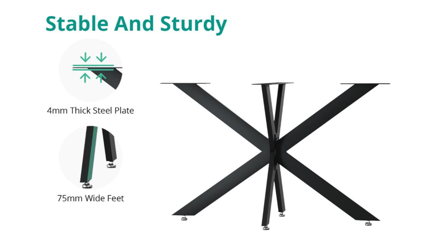 Upgrade your furniture effortlessly with the TSB Living Starburst Crossbeam Table Leg with Pre-Drilled Holes. Featuring an industrial starburst shape design and anti-rust powder-coated iron construction, these legs add both durability and flair to your table. The pre-drilled holes make installation a breeze, and the adjustable feet pads help protect your floors from scratches.