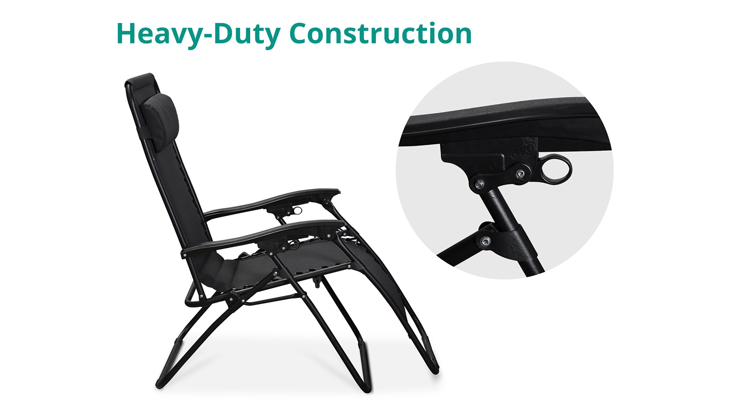 Relax in a perfectly balanced position using the TSB Living Zero Gravity Lounge Chair with Padded Cushion. Providing optimum comfort, this chair flaunts an ergonomic build with an adjustable reclining feature, a padded cushion, and a removable headrest. It is also lightweight and foldable, so you can easily bring it on your travels, camping, or to the patio.