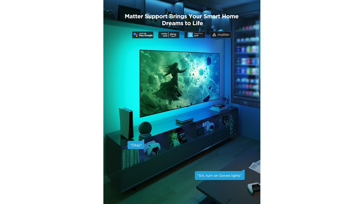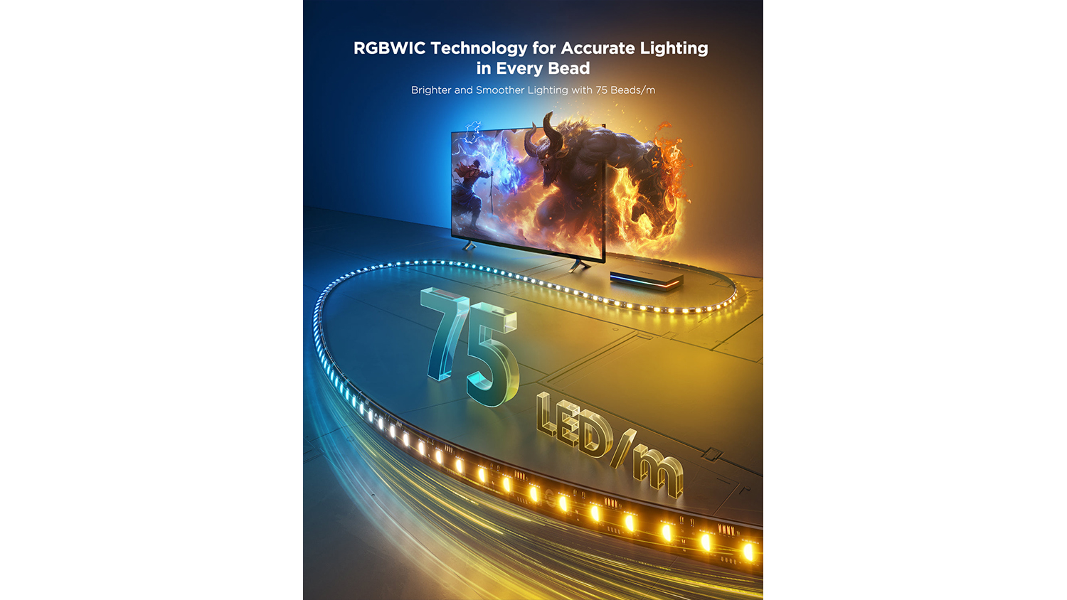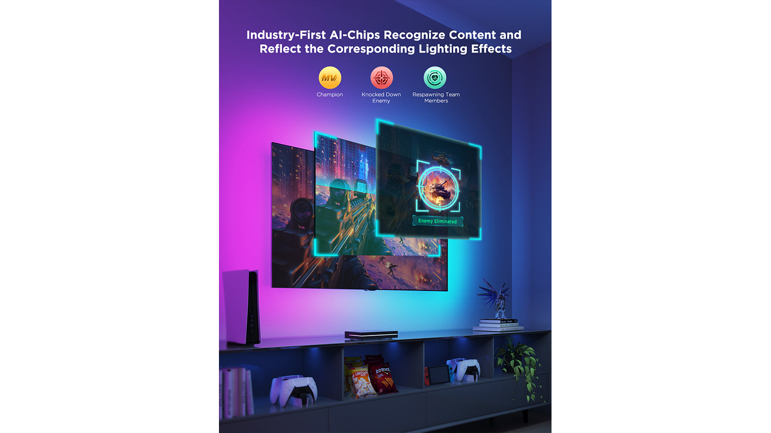 Upgrade your entertainment setup using the Govee AI Sync Box 2 Lighting Kit. Featuring 450 lumens per metre, HDMI 2.1 interface, as well as VRR and ALLM support, this high-density light strip provides a brighter and more immersive experience. Now you can enjoy real-time, AI-powered reactive lighting for games and movies.