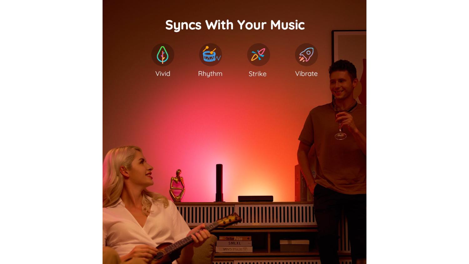 Transform your entertainment space with the Govee Flow Plus Light Bar with Wi-fi, Bluetooth Connectivity. Its RGBIC technology delivers stunning multi-colour lighting that syncs with your music for a truly immersive experience. You can also control your lights hands-free with voice and app controls.