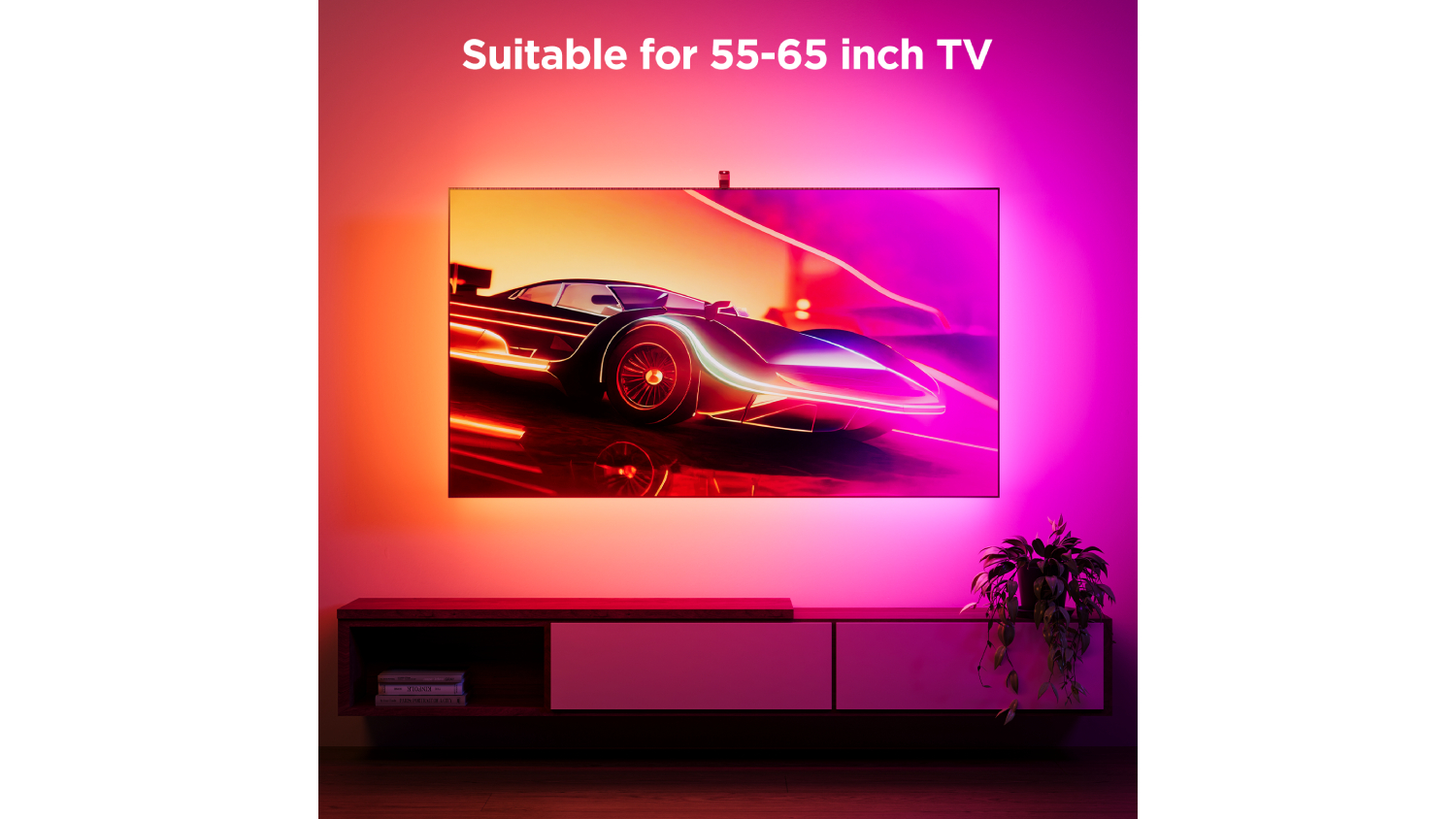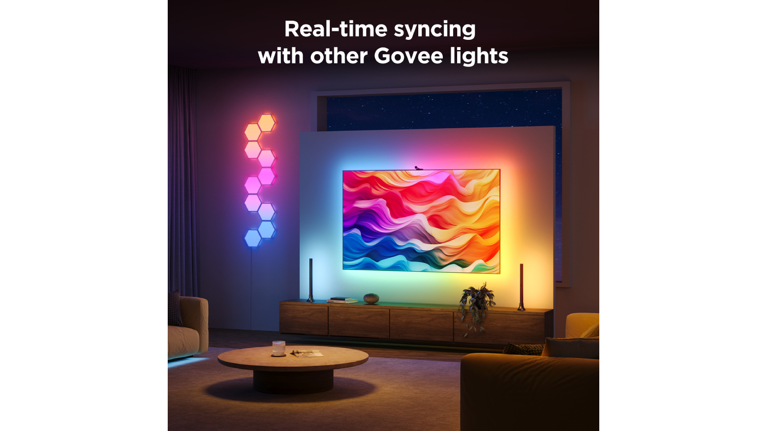 Upgrade your entertainment experience with the Govee Smart TV Backlighting Kit 3S for 55"-65" Monitors. Featuring fish-eye correction and Govee Envision Technology, this sleek system delivers vibrant colours, precise syncing, and immersive lighting effects for ultimate immersion. Compatible with Matter, Alexa, and Google Assistant, it seamlessly blends into your smart home while enhancing every movie, game, and show.