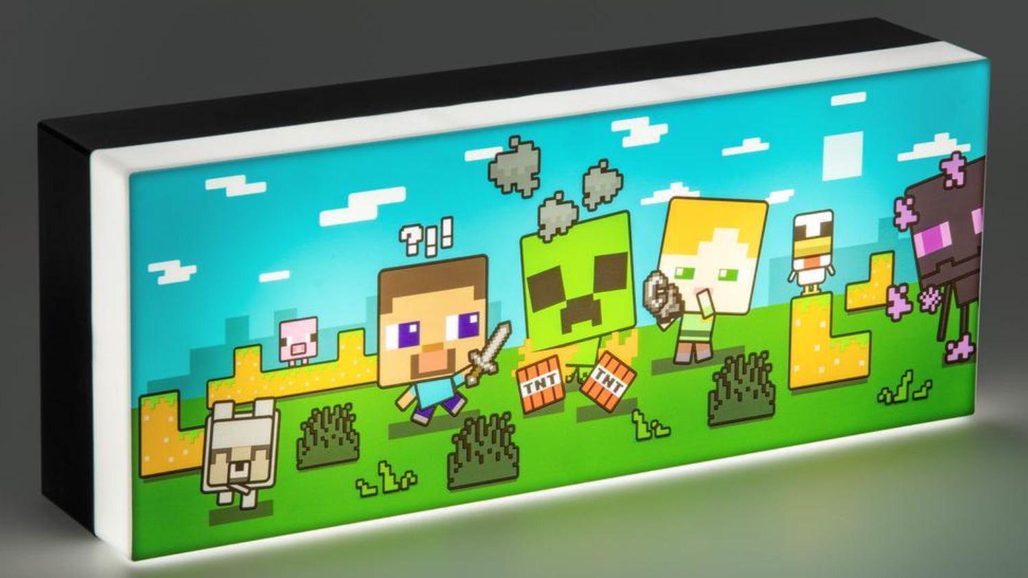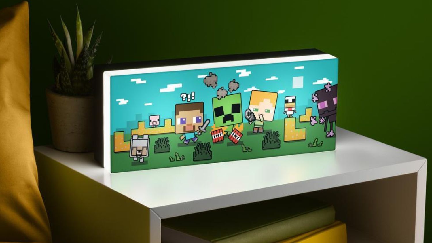 Illuminate your fan cave with the IM Novelty LED Character Light featuring Steve and Alex. This officially licensed light stands 30 cm wide, is easily wall-mountable, and features popular characters Steve and Alex. Choose between two lighting options—phase on or light pulsing mode. For flexible placement, power your light using the USB cable or batteries. It is a fantastic gift idea for any Minecraft collector.