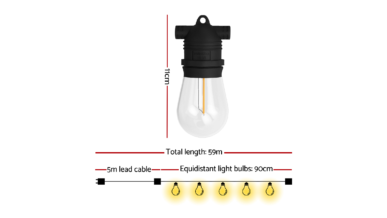 Add a touch of brilliance to any space with the New Aim Outdoor LED S14 String Festoon Lights 59m! Suitable for both indoor and outdoor settings, these ultra-bright lights are perfect for any celebration throughout the year. It stretches up to 59m with evenly spaced bulbs, delivering consistent and dazzling brightness. With an easy connection system, you can have these lights up in no time.