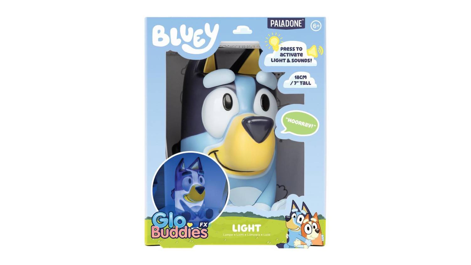 Make bedtime more fun with the Paladone GloBuddies Novelty Light featuring Bluey. Standing 18cm tall, this officially licensed night light is shaped like Bluey, emits a soft glow, and plays Bluey sounds to delight little fans. Battery-powered and featuring colour-in packaging, it’s perfect for bedside tables or shelves.