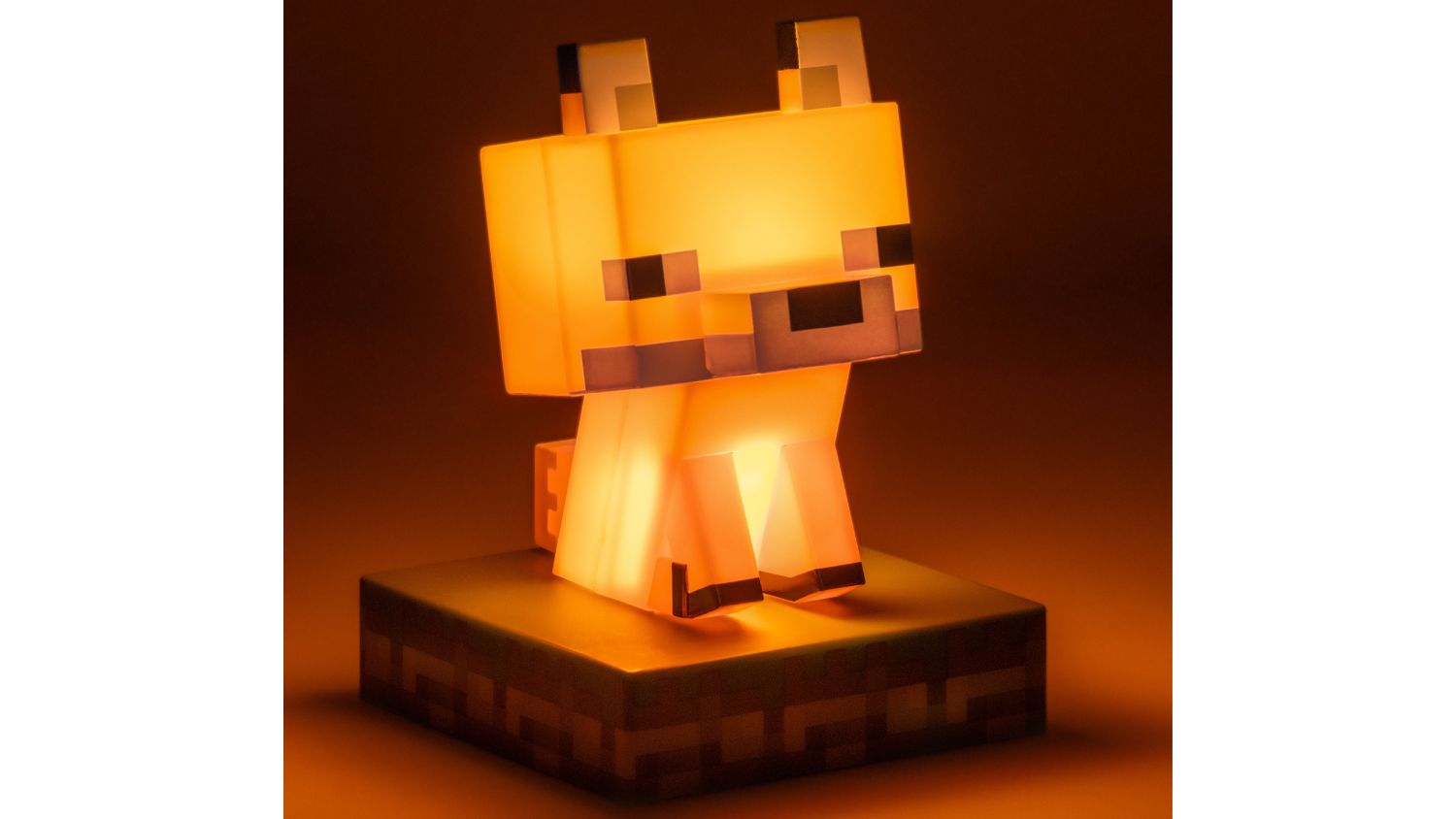 Add a cosy, pixelated touch to your room with the Paladone Novelty Icon Light featuring Minecraft Fox. Standing 11 cm tall, this officially licensed light is shaped just like the charming orange Minecraft Fox mob. It provides a relaxing, warm glow, ideal for your bedside table or shelf, making it a unique item must-have collectible and a great gift for Minecraft fans.