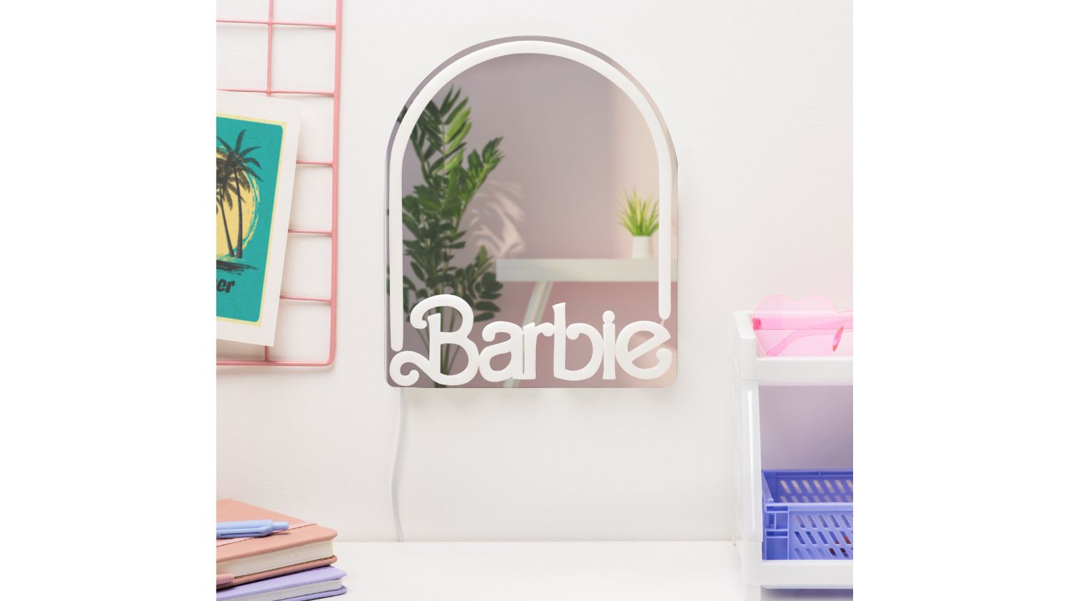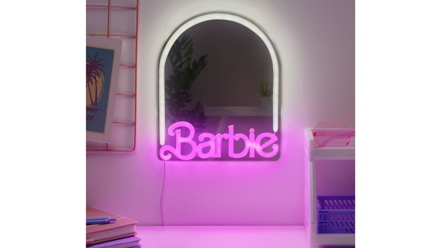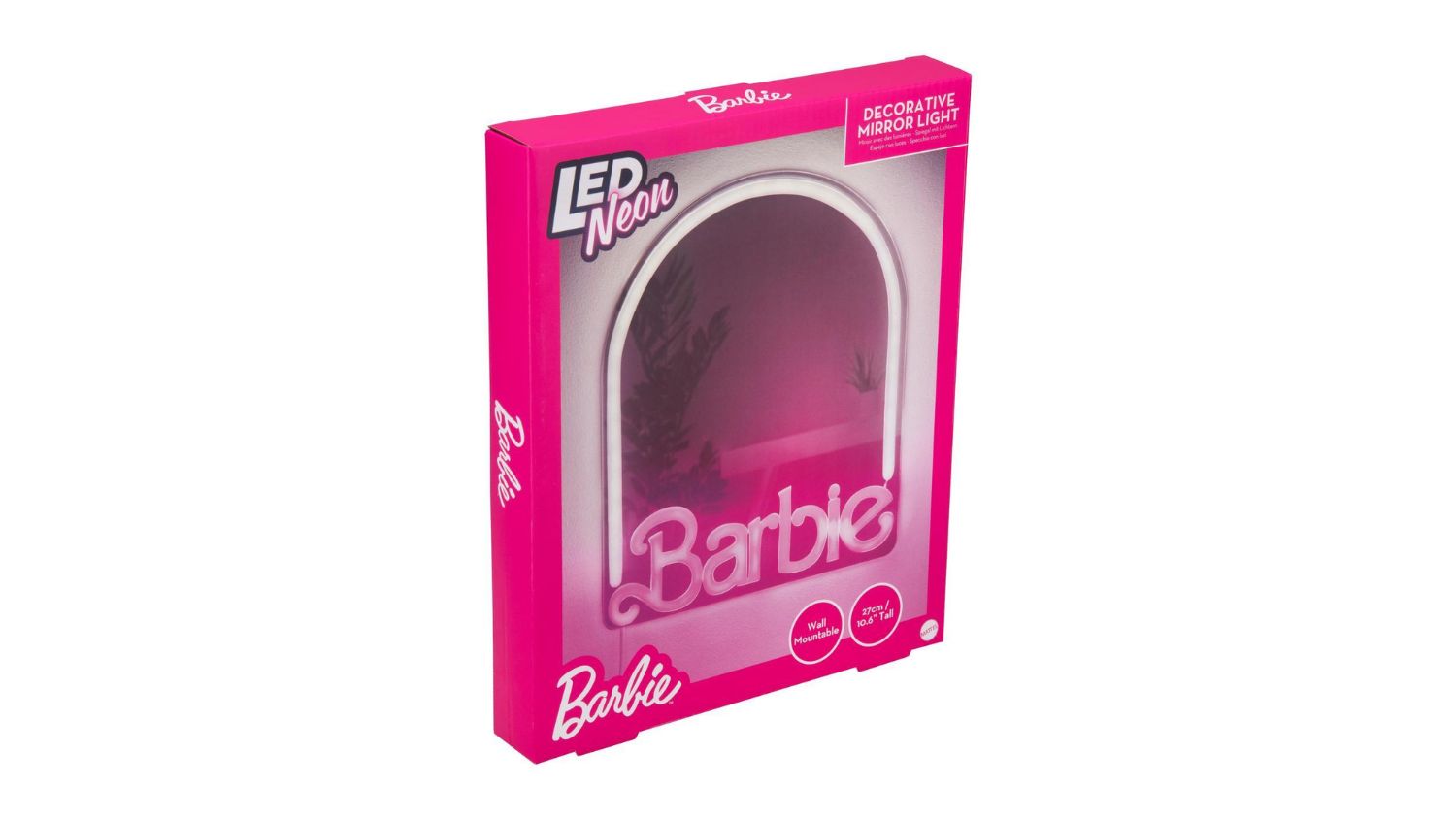 Get ready in glamour with the Paladone Novelty LED Light Mirror featuring Barbie. This officially licensed light mirror stands 27 cm tall and features a mirror decal backing combined with a vibrant LED neon light. This multi-functional décor is easy to hang on any wall with the included adhesive strips and is powered by an attached USB cable. It makes a fantastic gift for Barbie fans and collectors.