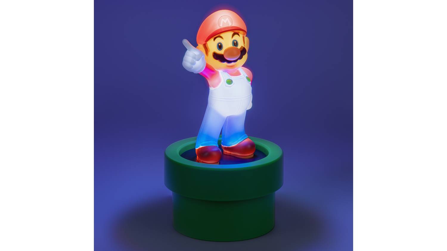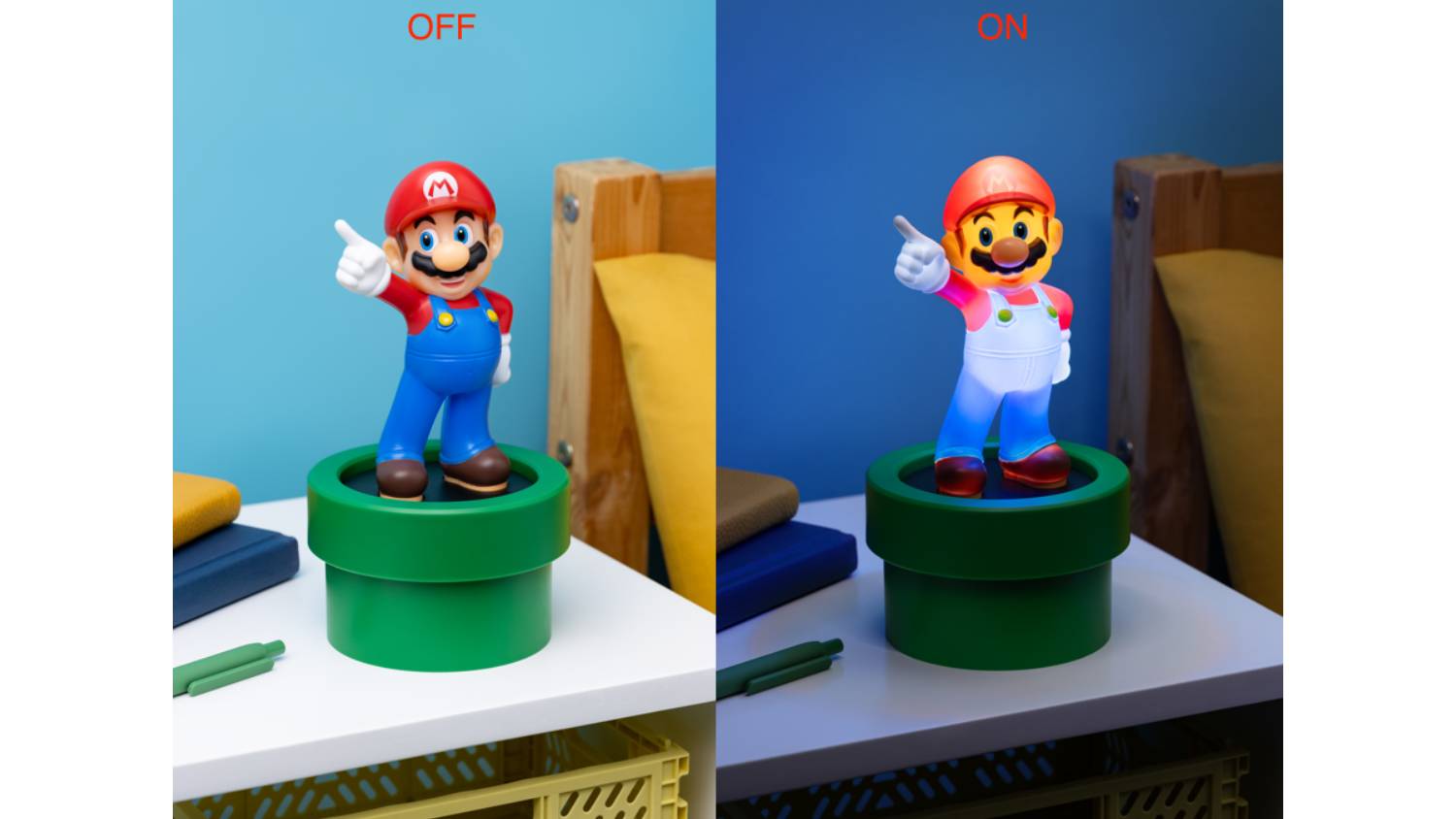 Level up your space with the Paladone Novelty LED Light featuring Super Mario Consumables. Standing 20cm tall, this officially licensed Nintendo light features Mario in iconic 3D form. Simply push it down to turn the light on or off, and power it via USB or batteries. It is perfect for shelves, desks, or as a night light.