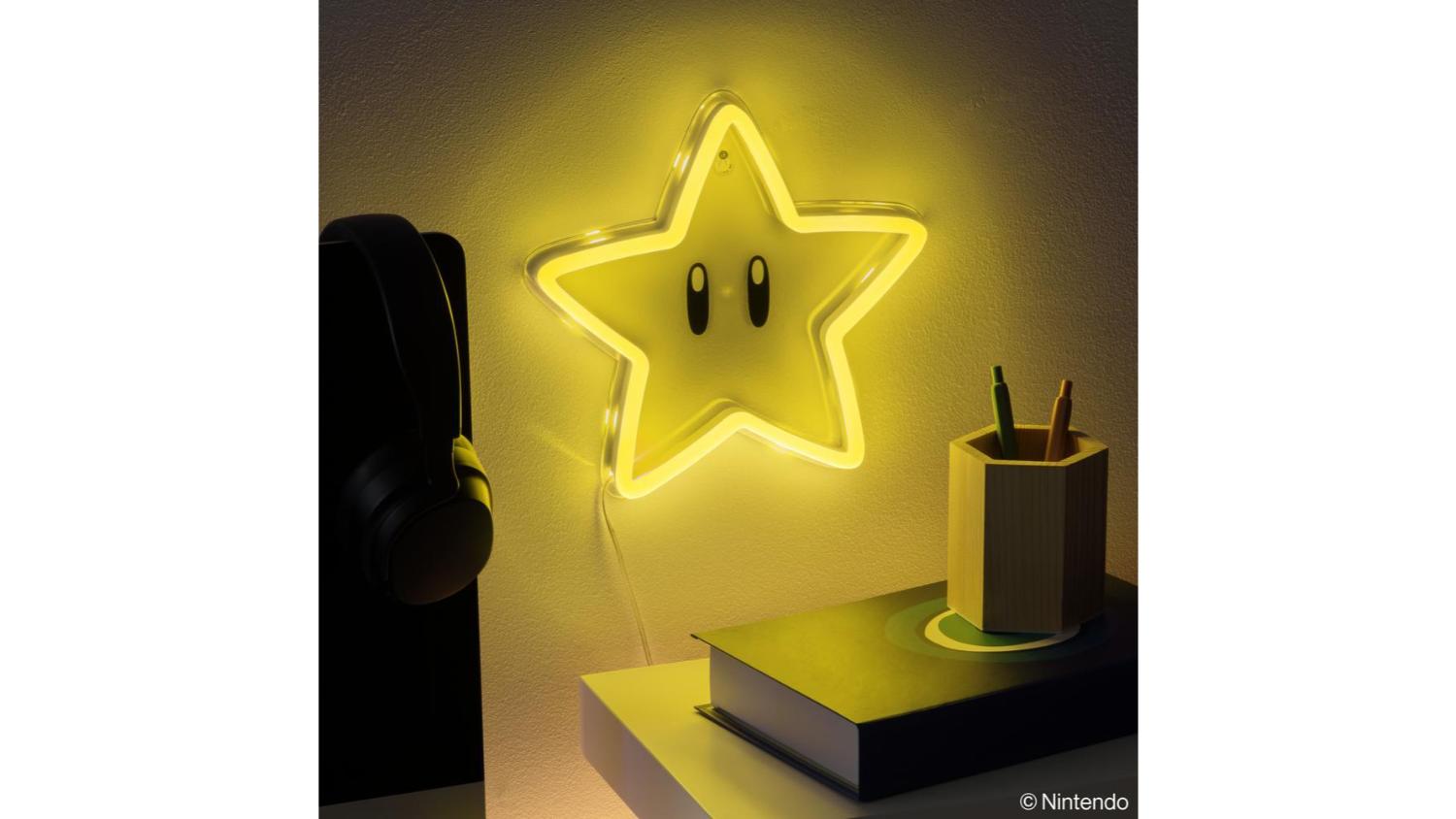 Give your room a power-up with the Paladone Novelty LED Neon Light featuring Super Star. This bold, Super Mario™ themed design brings a warm yellow shine and a playful gaming vibe to your décor. Officially licensed by Nintendo, it’s perfect for fans wanting to show off their love for the series.