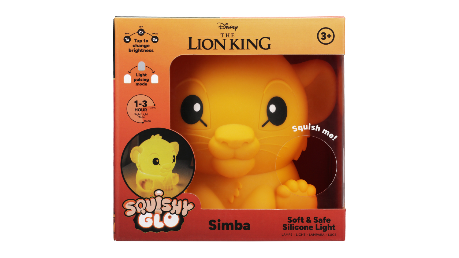 Make bedtime magical and comforting with the Paladone SquishyGlo Silicone Light! This adorable Simba light is super soft, safe, and squishy, perfect for little hands. It offers a built-in auto-off function after 1 to 3 hours of use, and it boasts three brightness levels to create the perfect calming ambience. It also has a cordless design that your child can easily place on your bedside table or shelf.