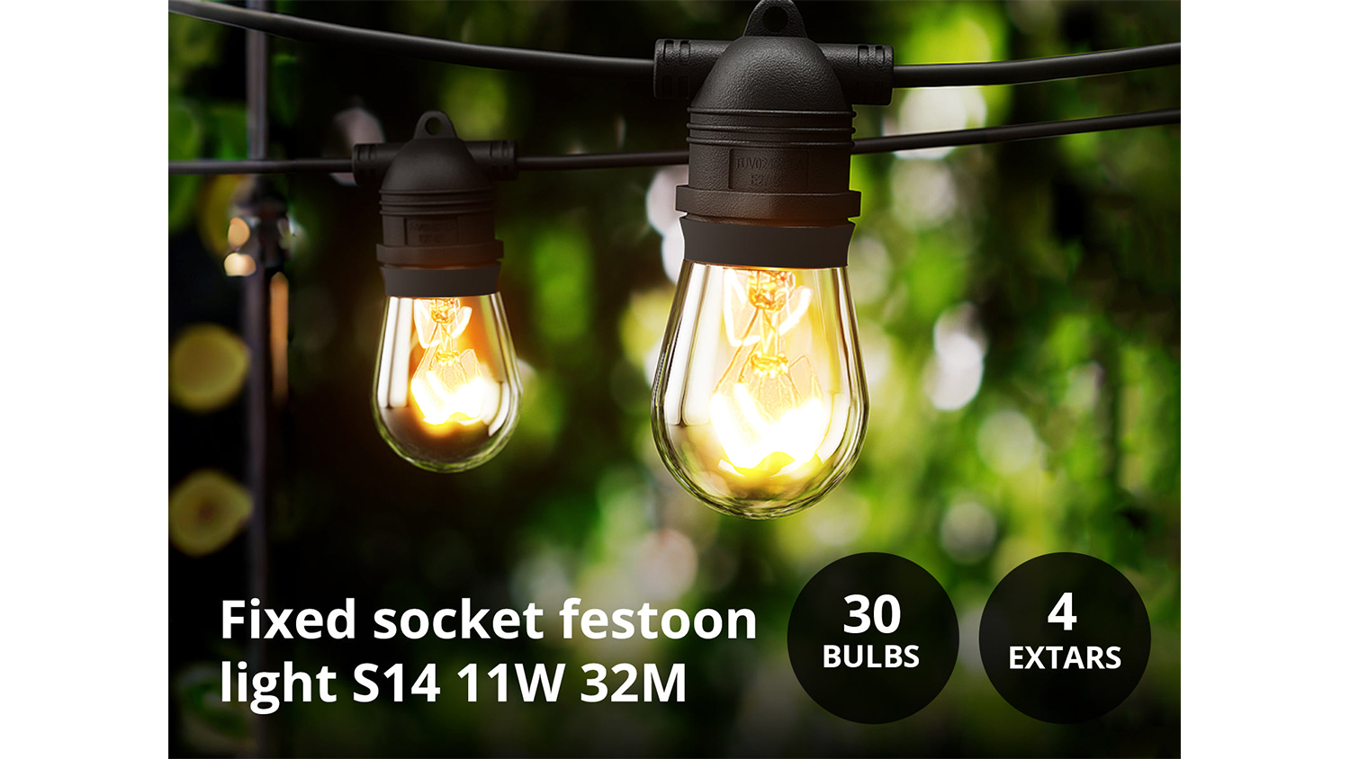TSB Living Fixed Socket Tungsten Festoon Light String S14 32m