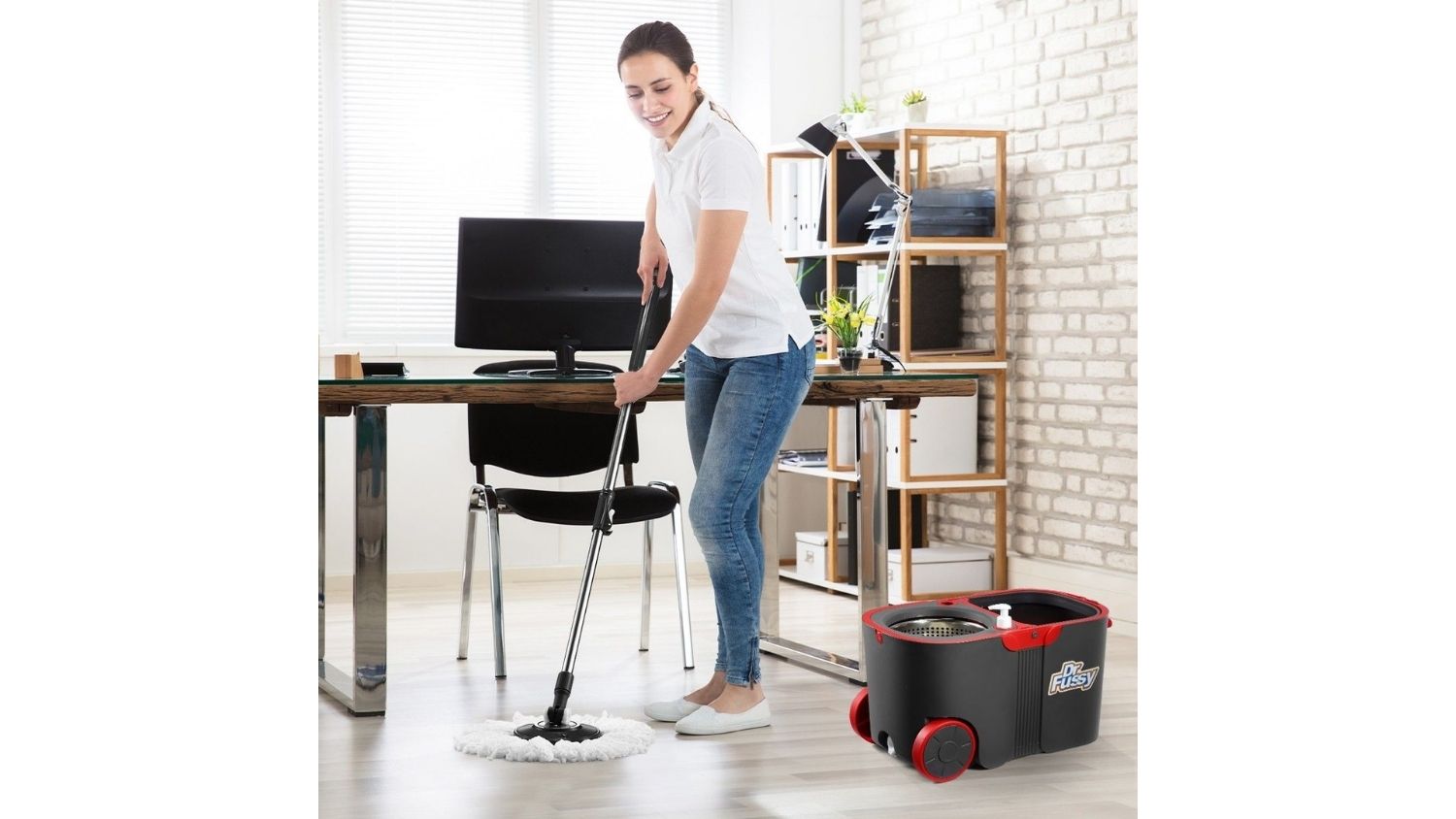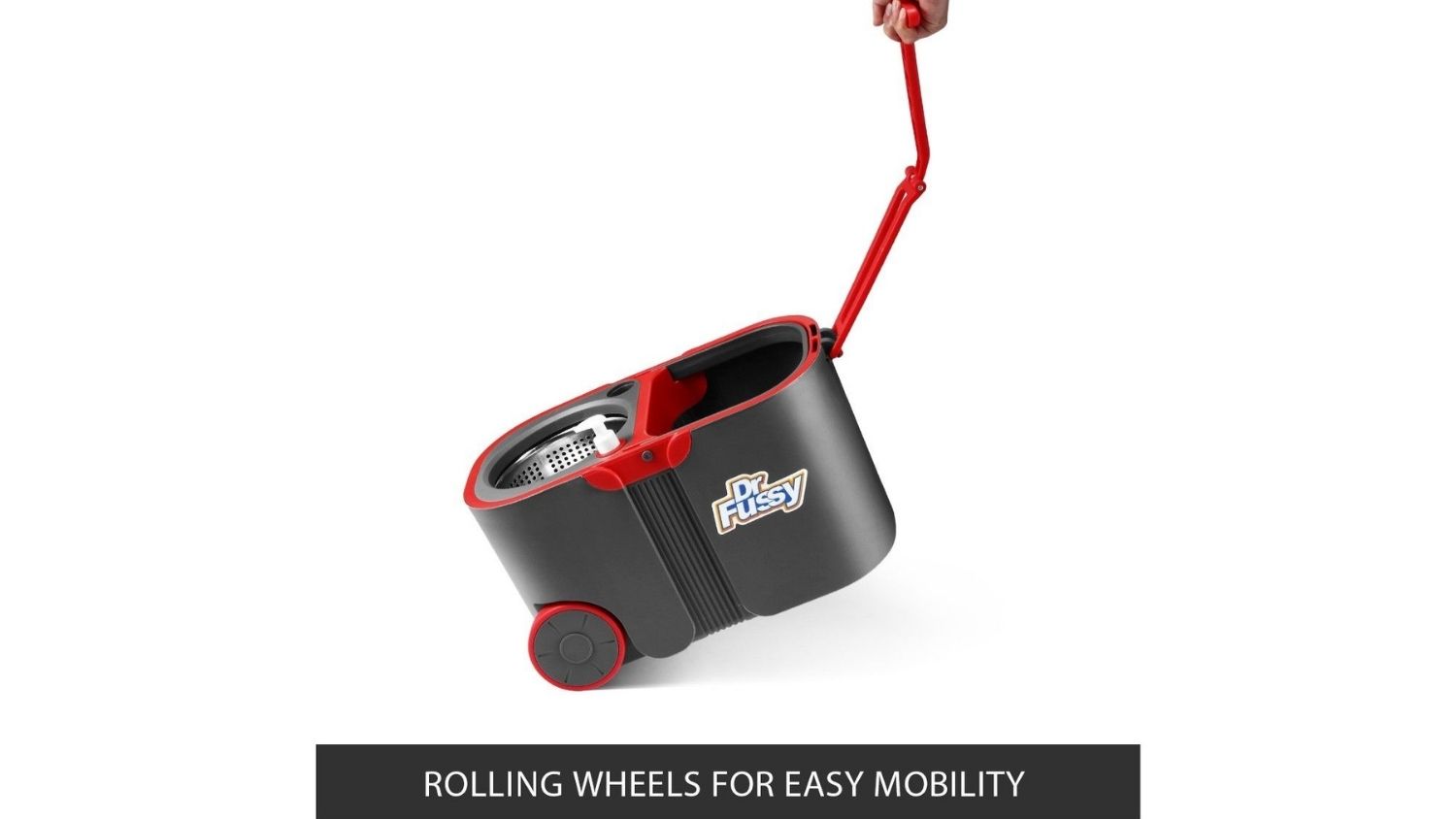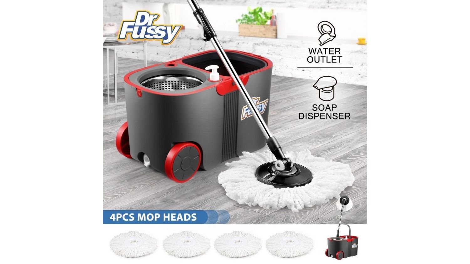 The Dr. Fussy Spin Mop and Bucket Set 11L with Replacement Mopheads 4pcs. is your go‑to solution for quick and efficient floor cleaning. Its wheeled bucket allows easy movement from room to room, while the upgraded swivel mop head glides effortlessly under furniture. This set also includes four electrostatic microfibre mop heads that pick up dust, dirt, and hair in a breeze. Cleaning up is just as simple—drain dirty water through the bottom outlet and toss the mop head into the washing machine.