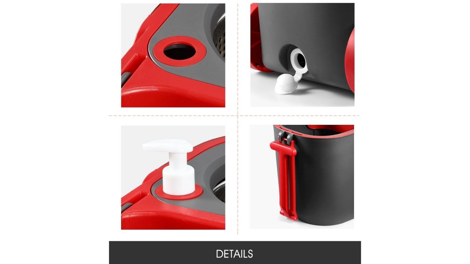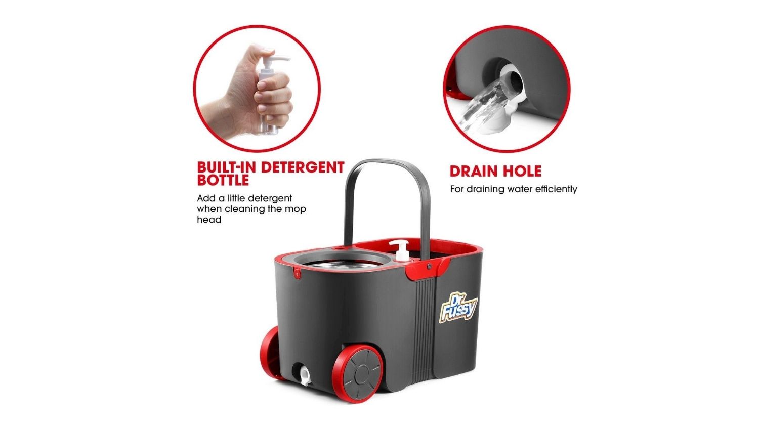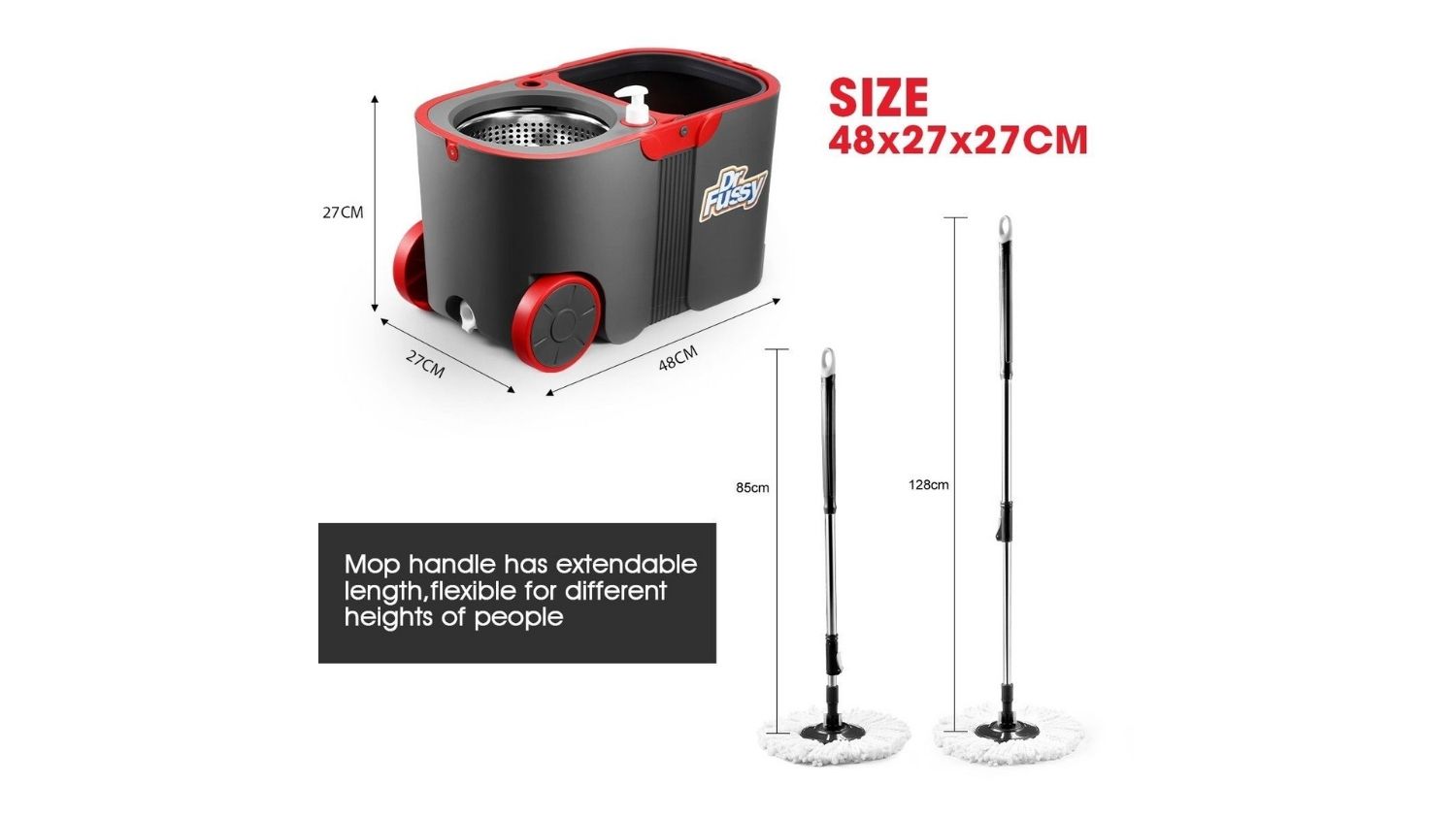 Dr. Fussy Spin Mop and Bucket Set 11L with Replacement Mopheads 4pcs. - Black/Red