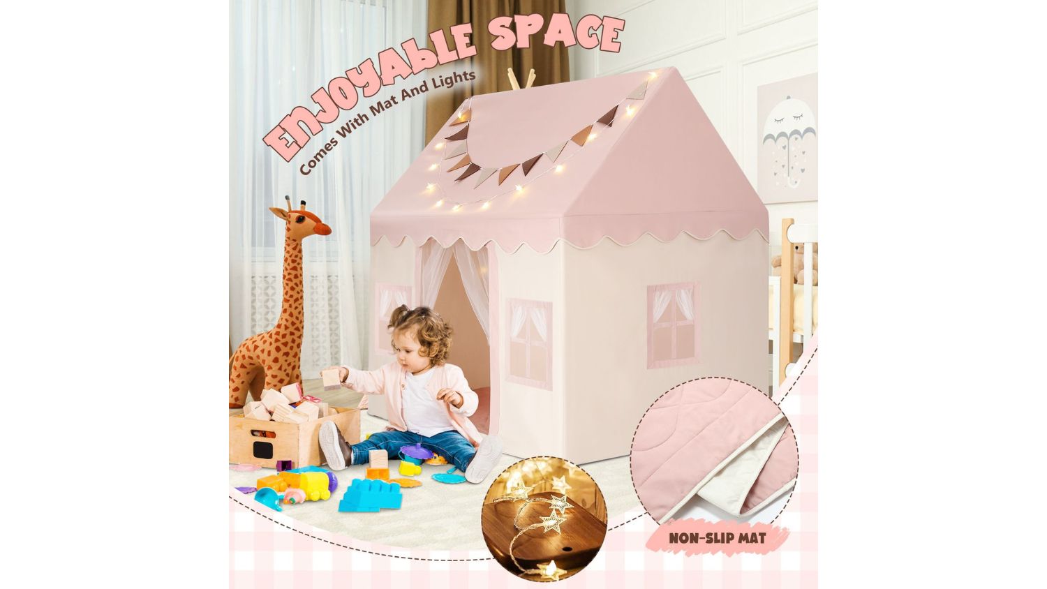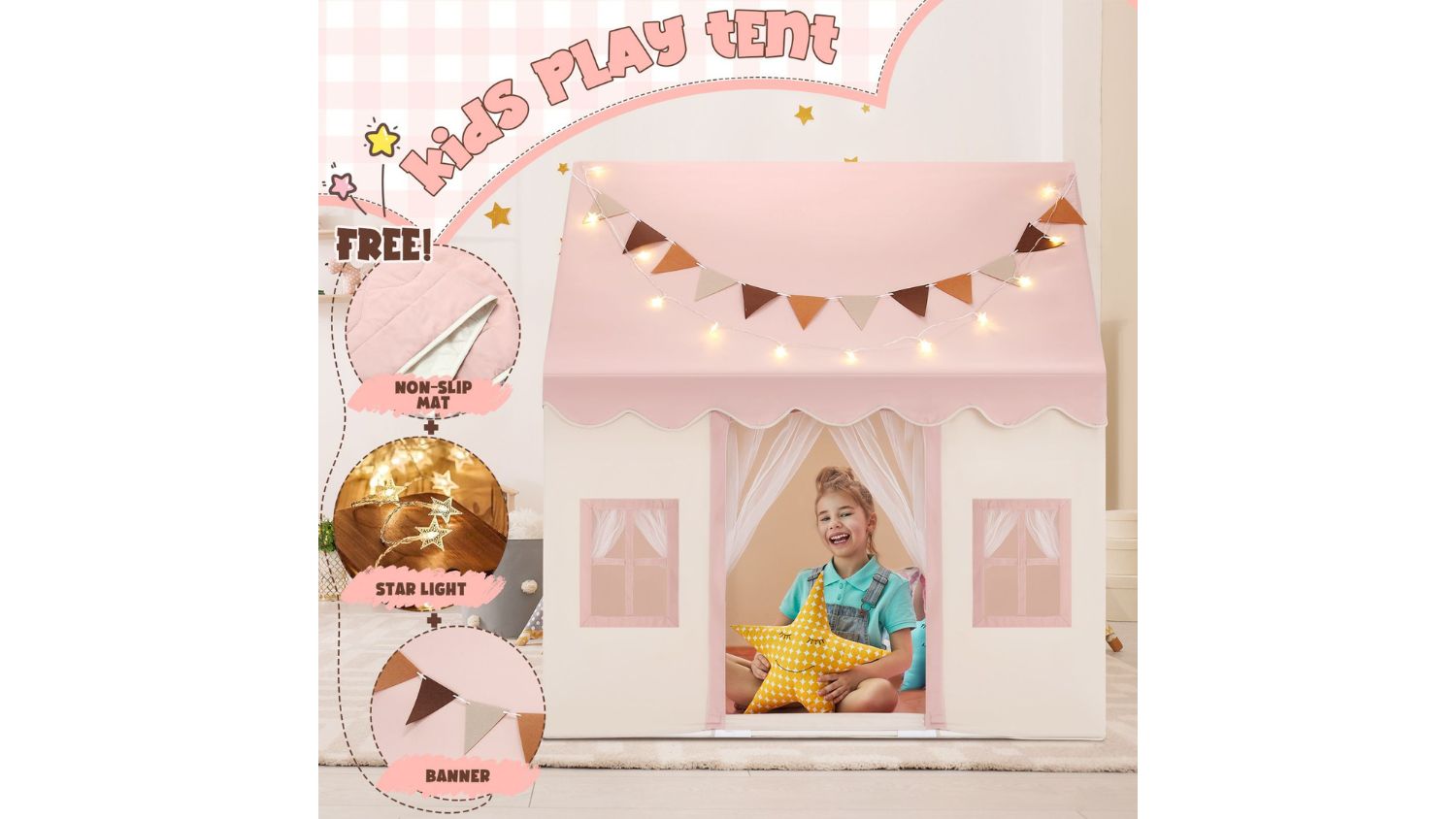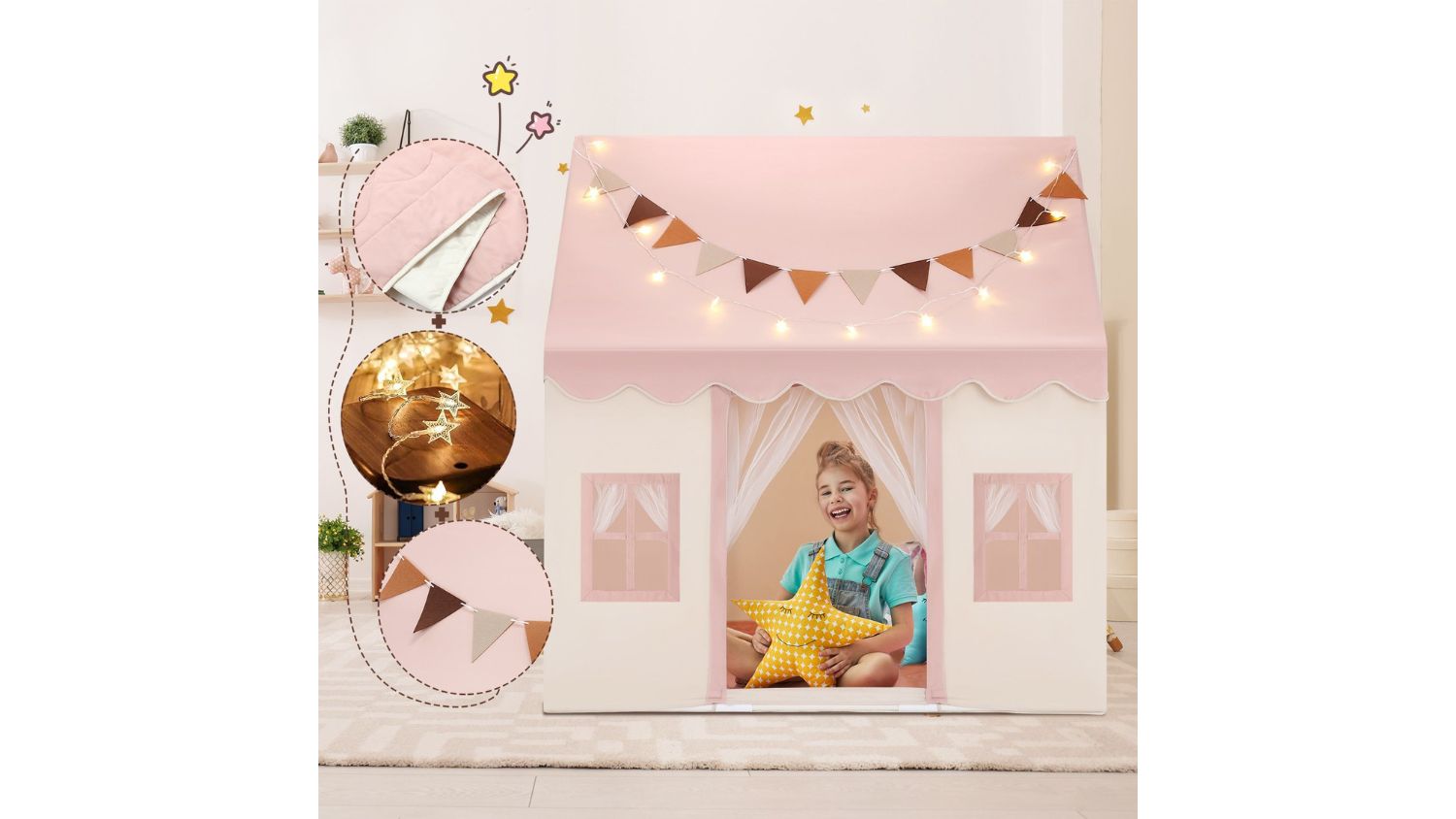 Create a dreamy hideaway your kids will love! The Kidbot Children’s Play Tent offers a spacious 120 x 100 x 130 cm interior—perfect for role‑playing, storytime, and cosy naps. With 3 metres of soothing star lights, a fun banner, and a comfy non-slip mat, it instantly transforms into an inviting play space. Crafted from premium polyester with a solid structure, it’s safe, sturdy, and built to last.