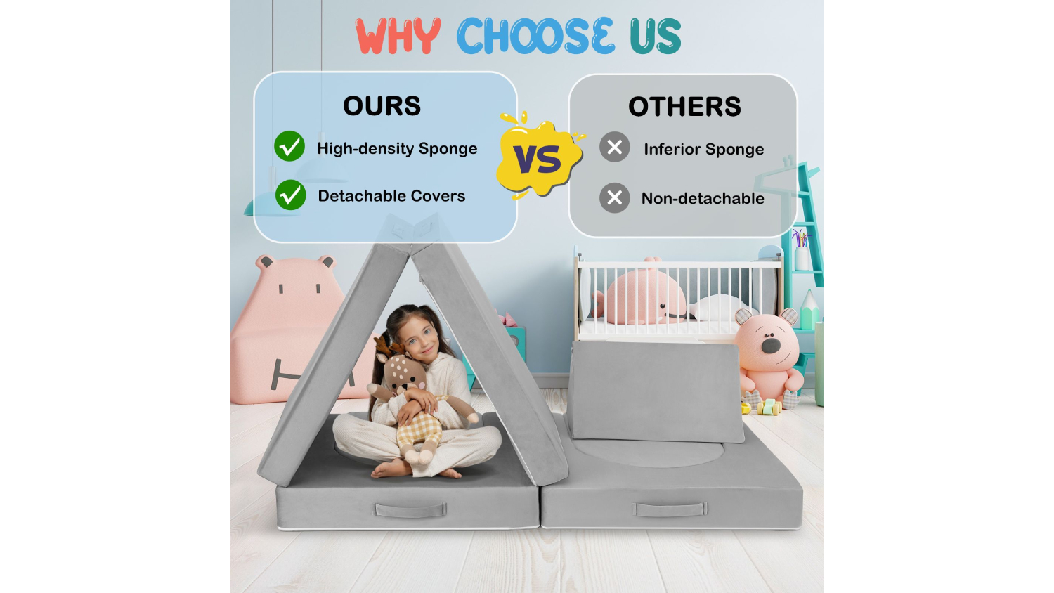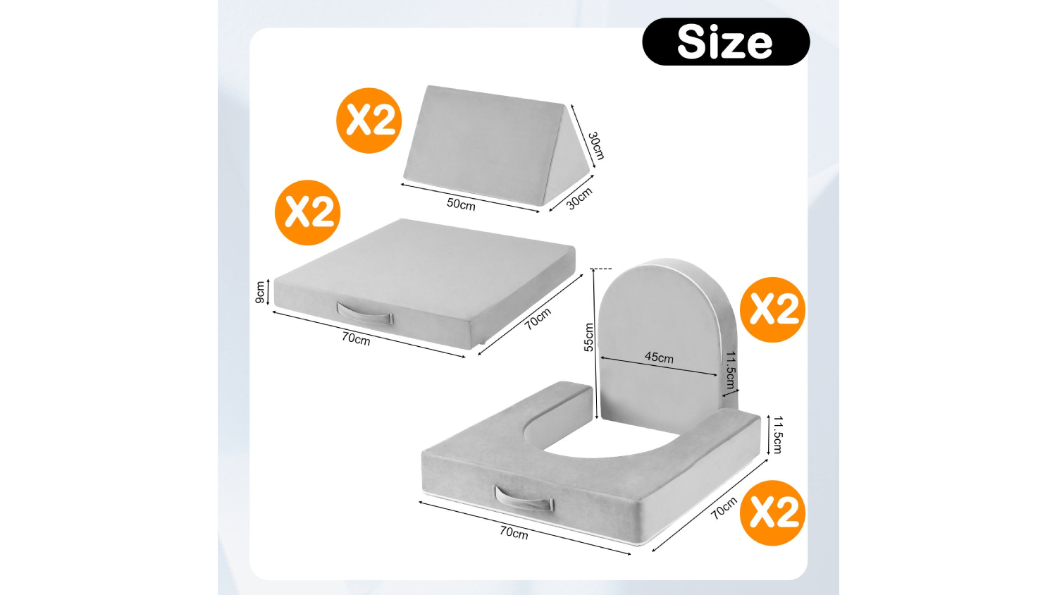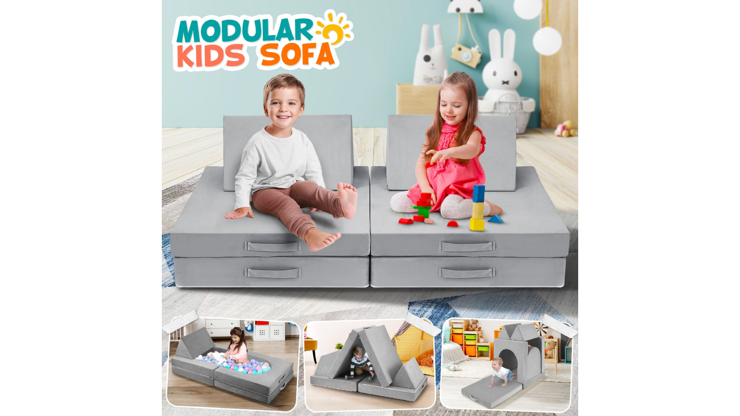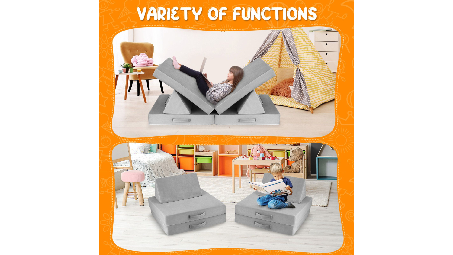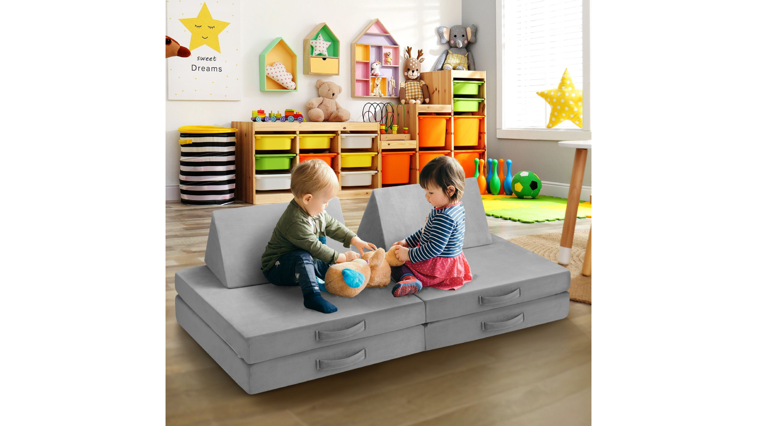 The Kidbot Modular Children's Furniture 8pcs is the ultimate creativity booster for kids who love to build, climb and explore. With eight modular cushions, it transforms into countless setups—think sofa, fort, tunnel, bed, or even two separate chairs. It's strong, supportive construction withstands tough play, while the soft surfaces keep playtime safe and comfortable. Parents will love the removable, machine-washable covers and the folding mats with built-in handles for easy portability. Whether in the bedroom, living room or playroom, this convertible sofa sparks imaginative, open-ended play every day.