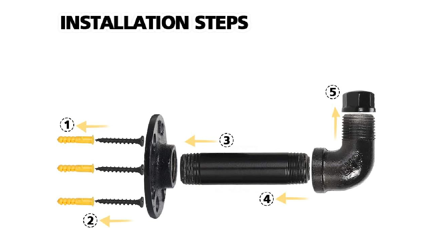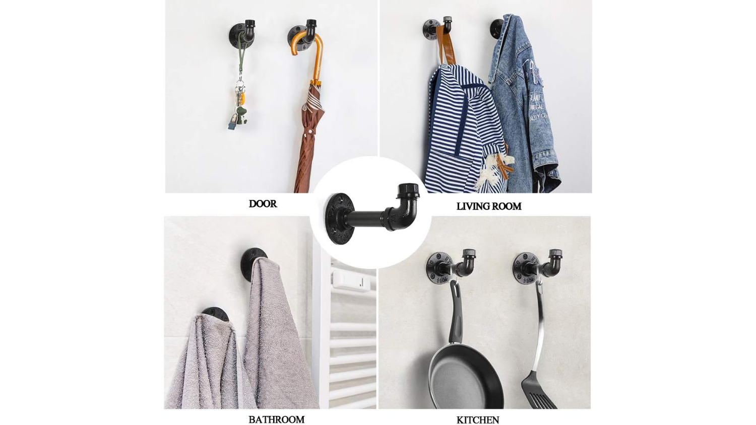 Kmall Industrial Pipe Wall Mountable Right Angle Hook 3pcs. - Black