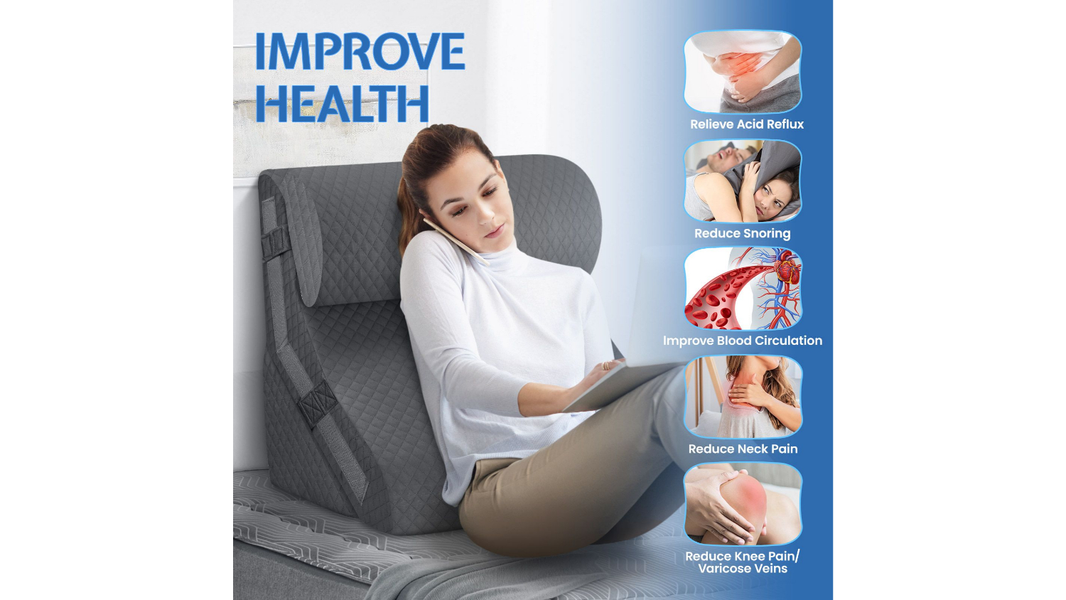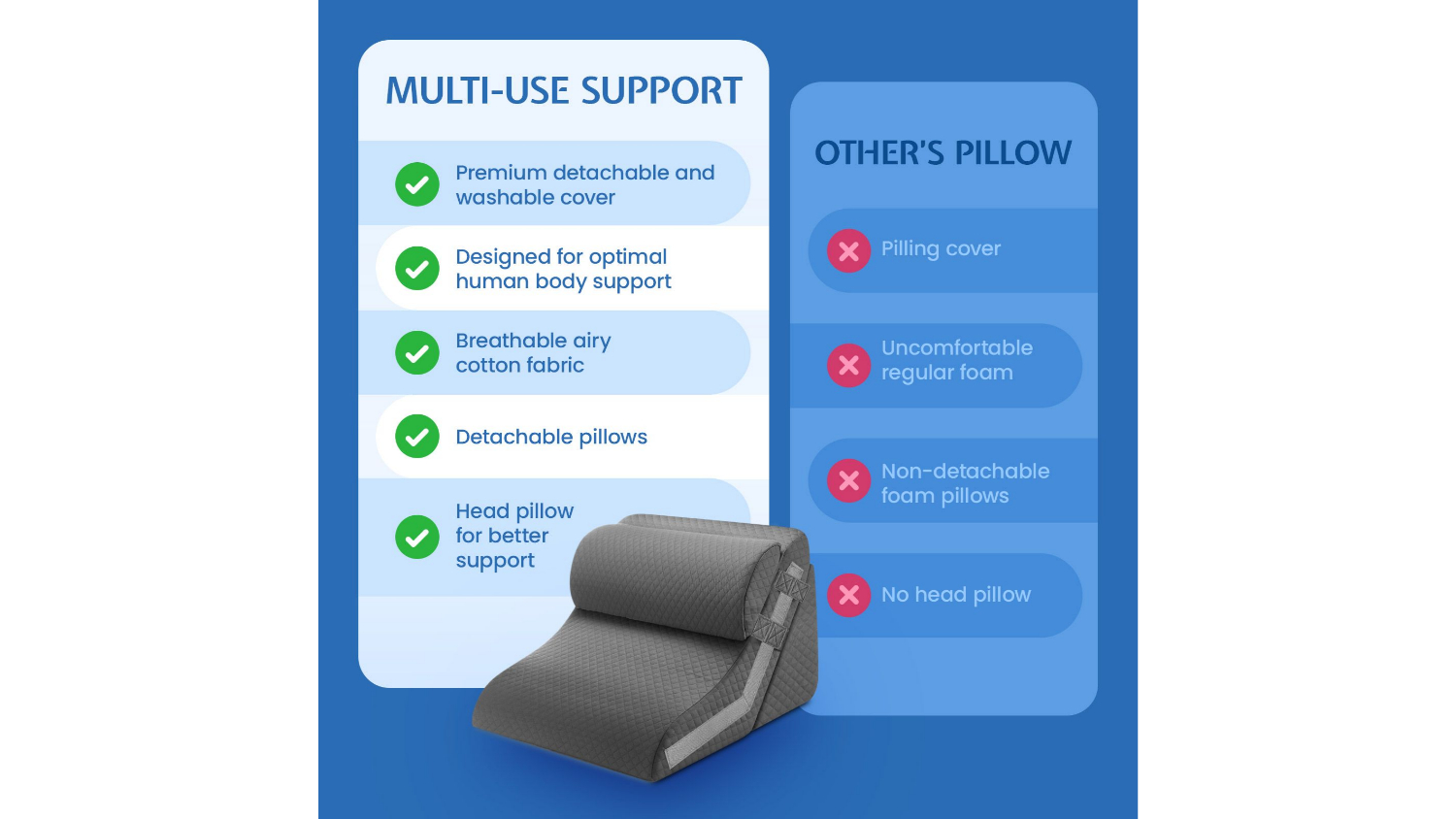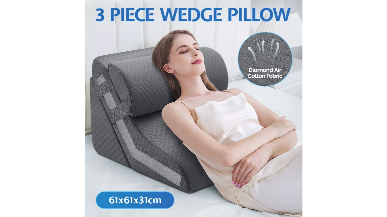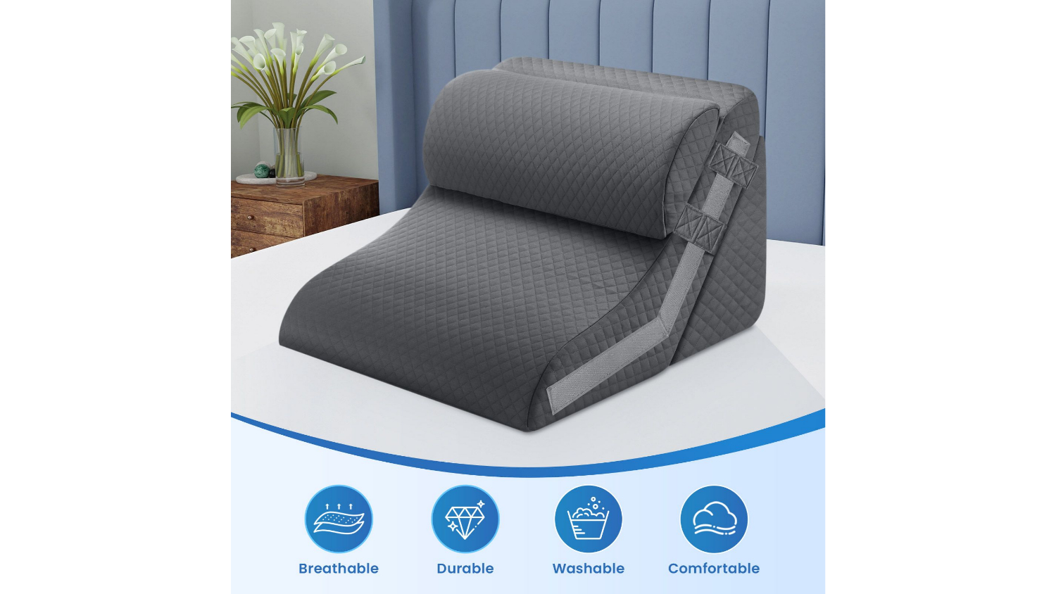 Create a more comfortable resting position with the Luxdream Foam Support Wedge Pillow Set. Featuring curved wedge designs that follow your body’s natural shape, this pillow collection is ideal for supporting your head, back, and legs. It’s also crafted from high-density foam and air-cotton fabric to balance softness with strong support.