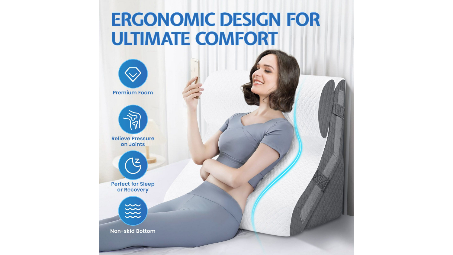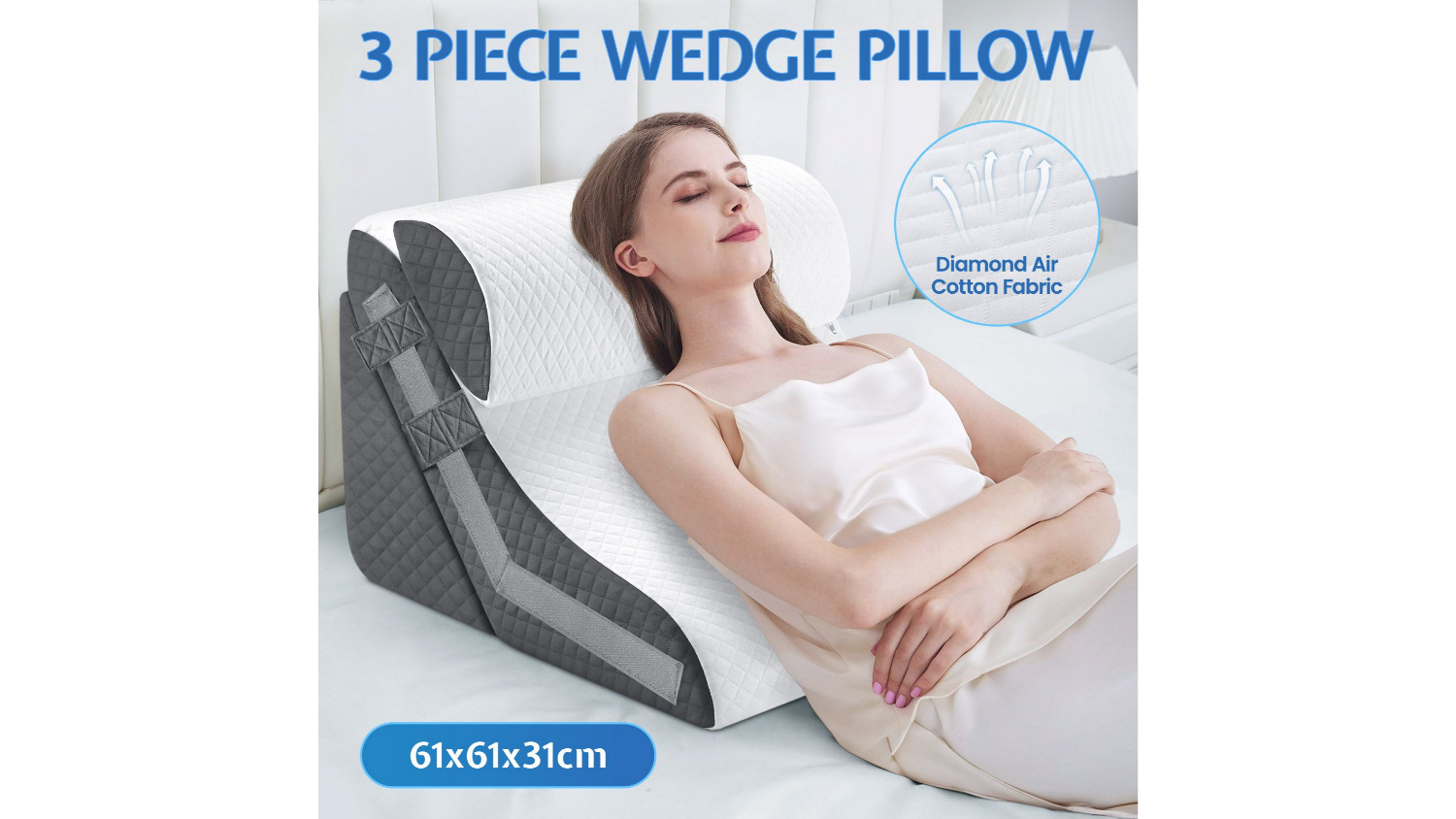 • This 3-piece wedge pillow set provides supportive cushioning for your head, back, and legs, promoting better posture and enhanced comfort while resting or sleeping. Its curved design conforms to your body, providing optimal alignment and pressure relief.