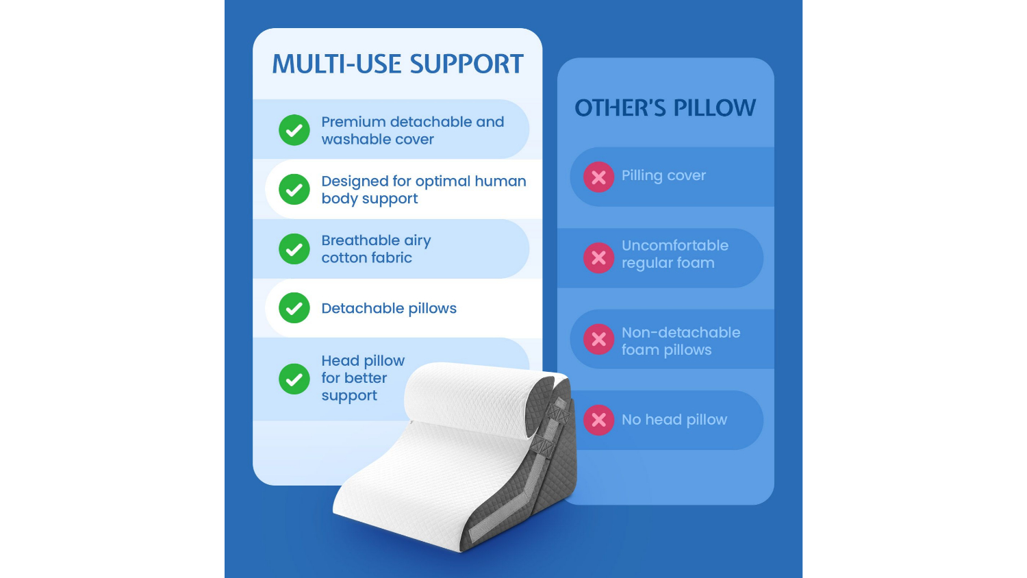 • This bundle is ideal for post-surgery recovery, acid reflux relief, reading, lounging, or easing snoring and leg swelling. The adjustable design allows you to customise positions to suit your needs.