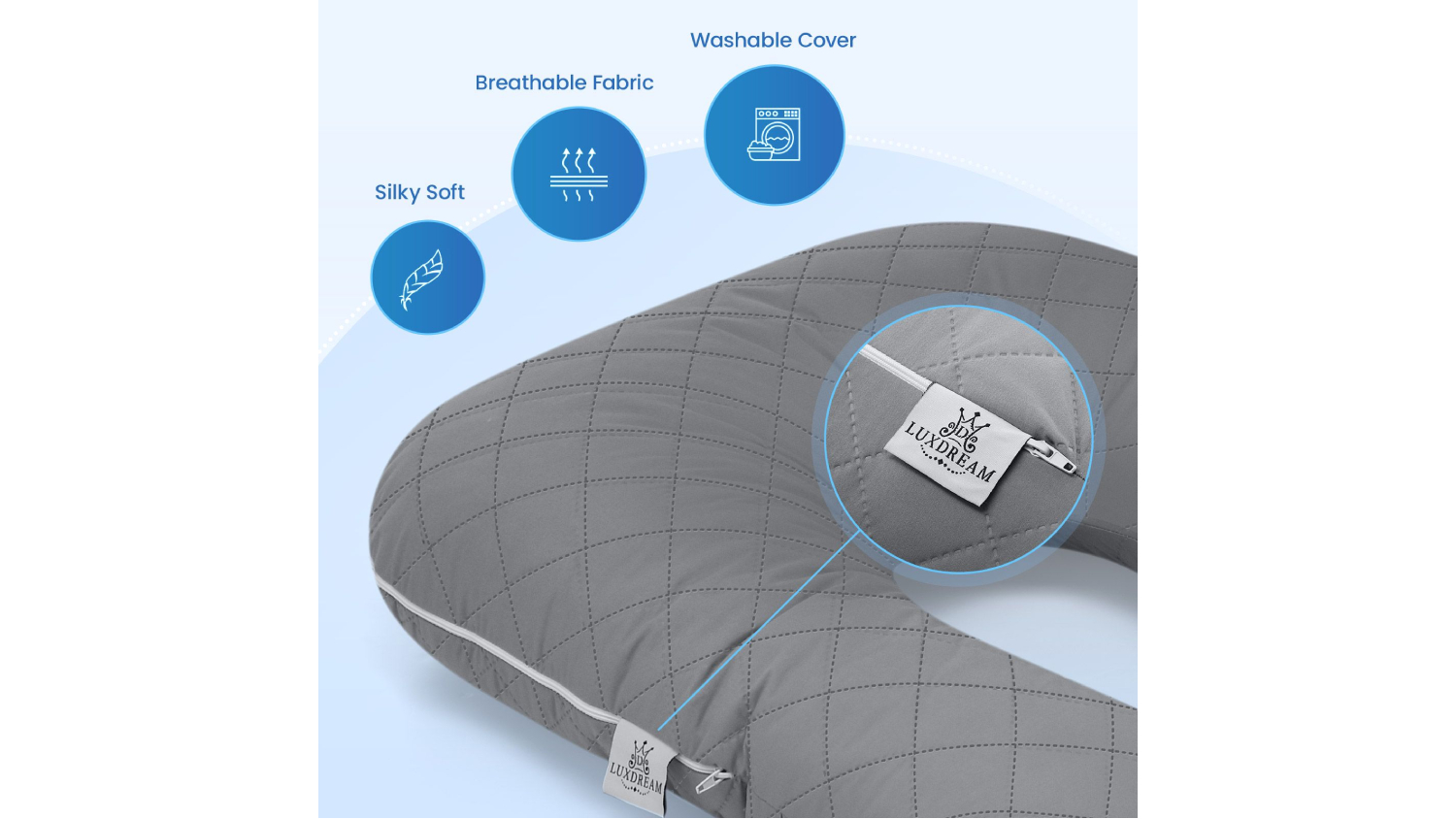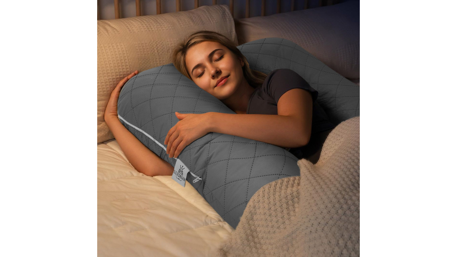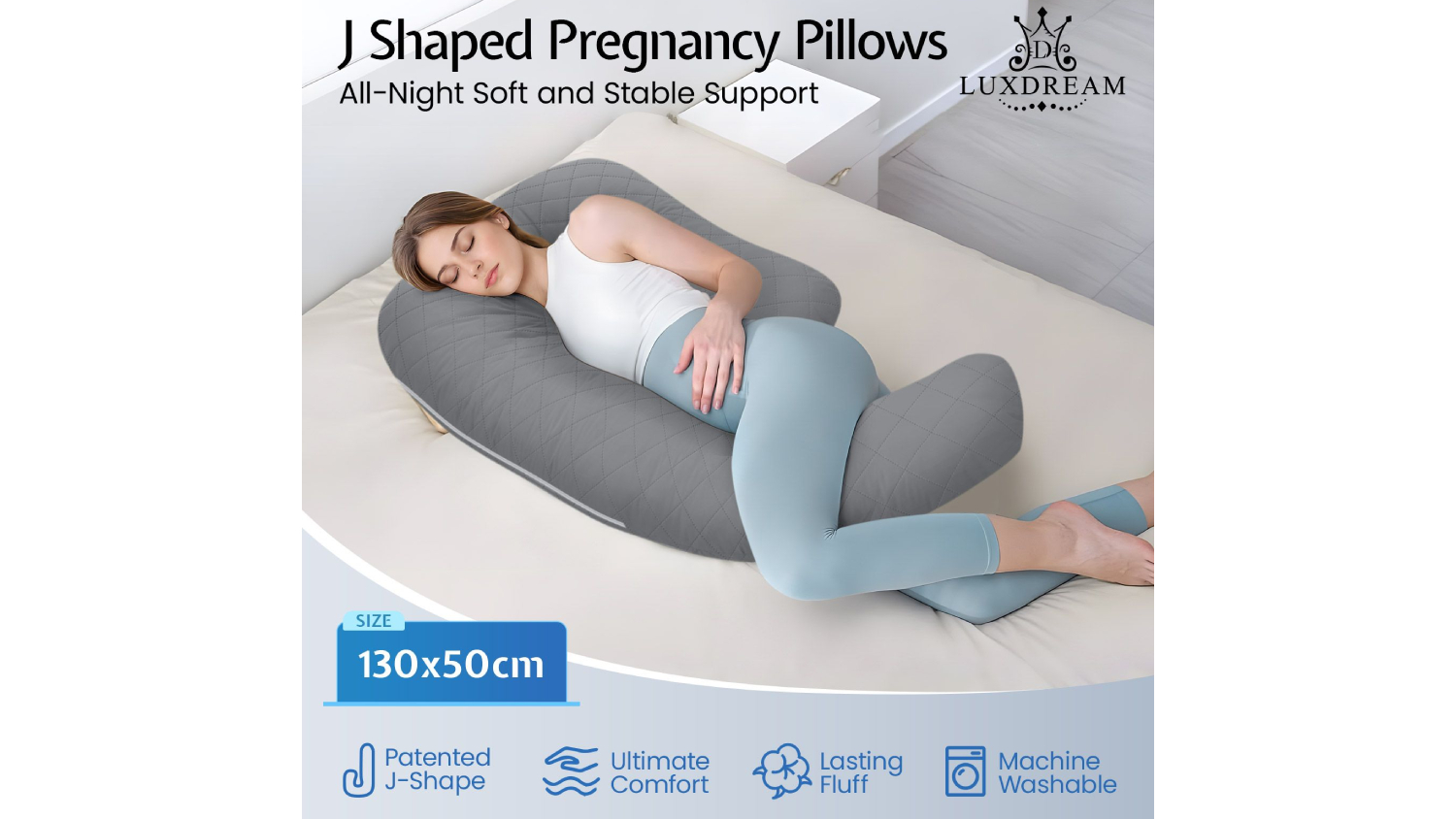 The Luxdream Shredded Memory Foam J-Shape Body Pillow delivers the ultimate blend of comfort and support for pregnancy, side sleeping, or everyday relaxation. Its ergonomic J‑shape gently cushions your shoulders, hips, back, and belly, while high‑density shredded memory foam adapts to your ideal sleep position. Wrapped in a breathable gauze cotton cover and designed in an oversized, full‑body style, it keeps you cool, cosy, and fully supported all night long. Plus, the removable, machine‑washable cover makes upkeep a breeze.