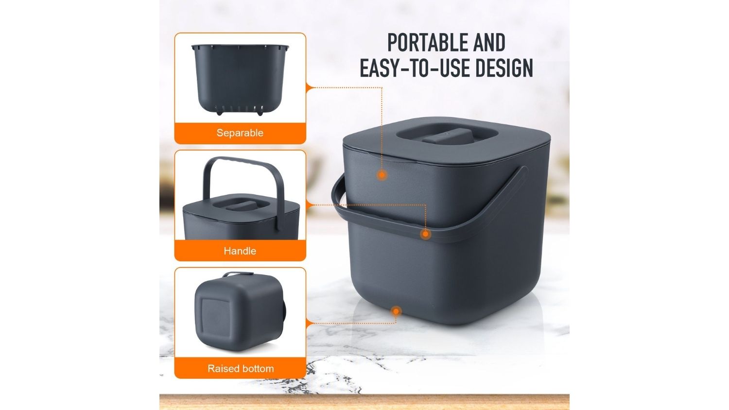 Say goodbye to a messy kitchen with the Luxsuite Countertop Waste Caddy. This unit is made from high‑quality, eco‑friendly PP material for long‑lasting durability. Its 7‑litre capacity, scratch‑resistant surface, and wide handle make it ideal for everyday use. With residue‑and‑liquid separation and a detachable,closed lid that prevents odours and simplifies cleaning, it’s a must‑have for a fresher, more hygienic kitchen.
