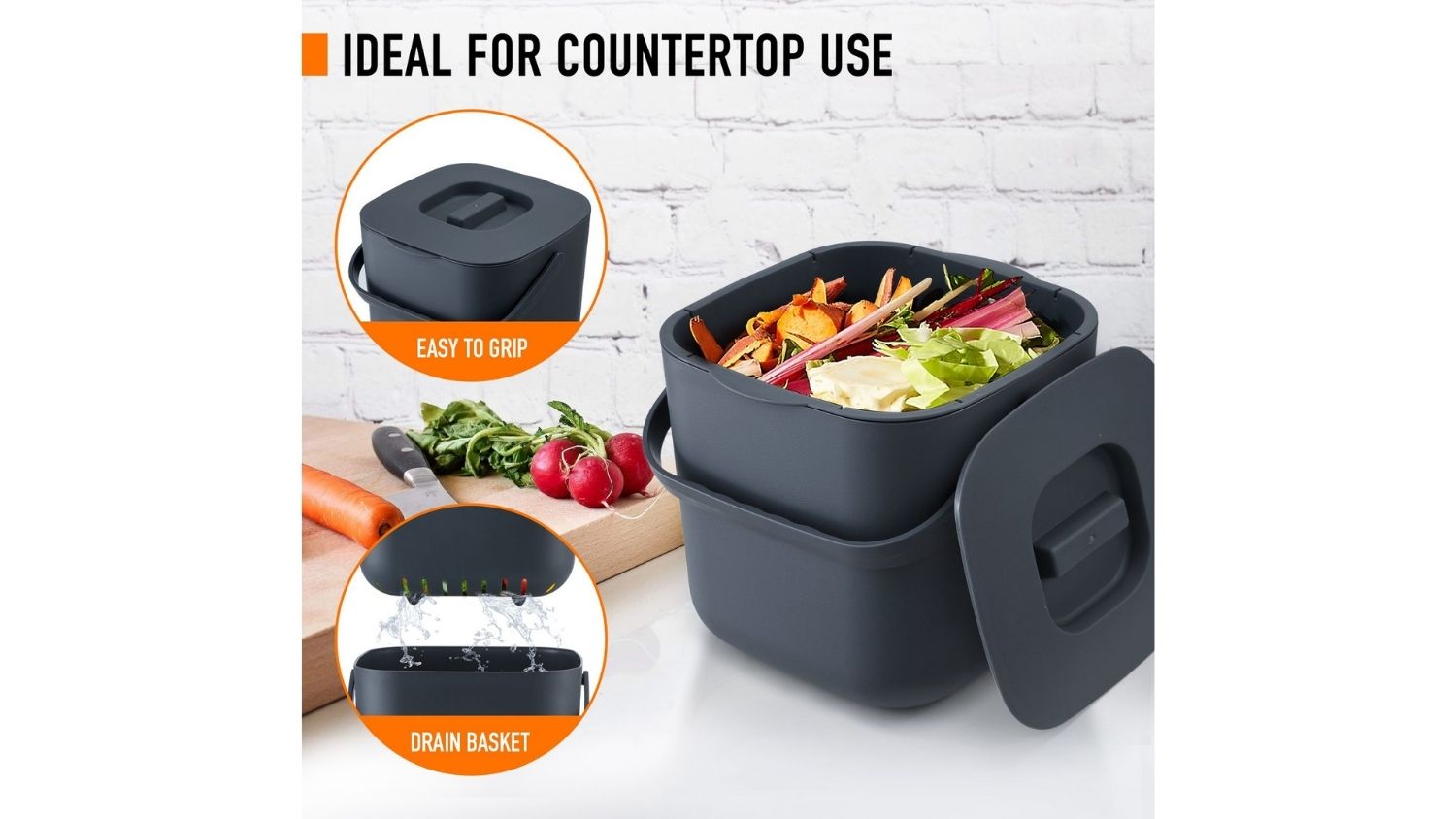 Luxsuite Countertop Kitchen Waste Caddy 7L