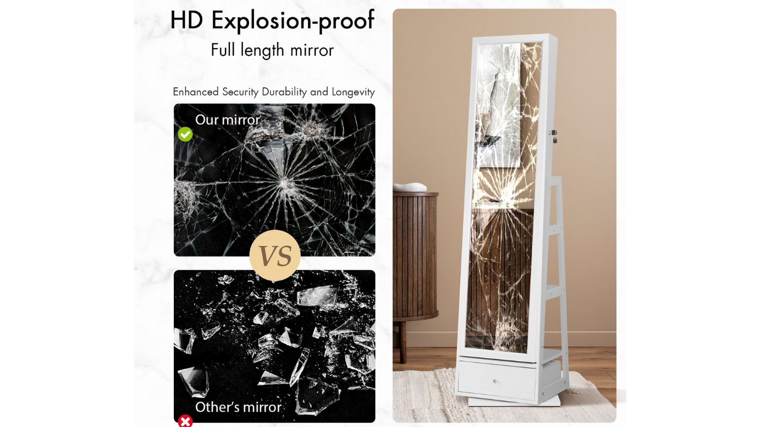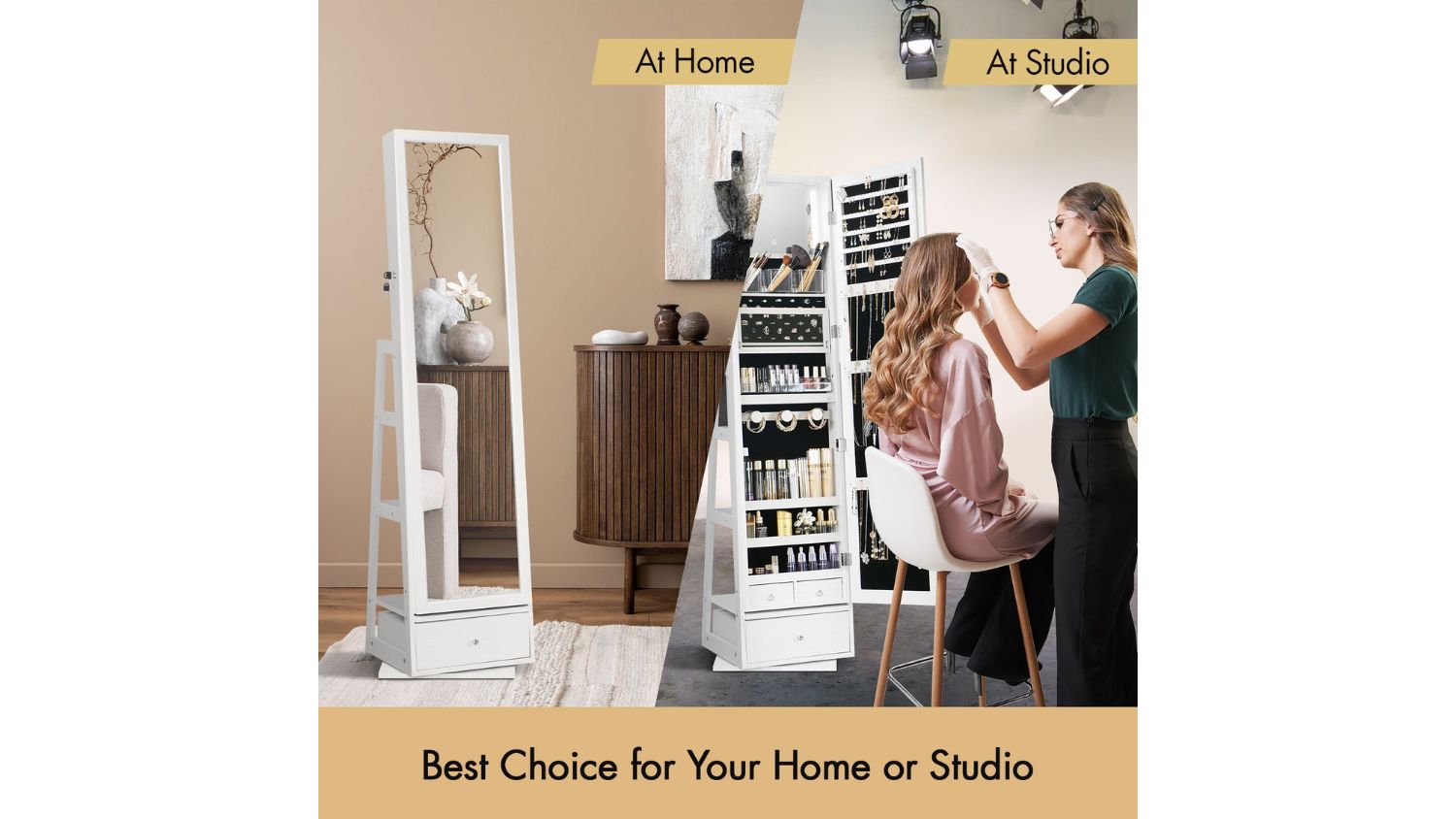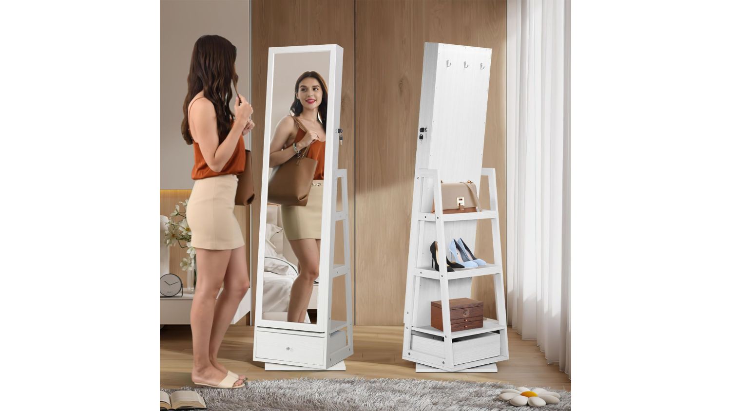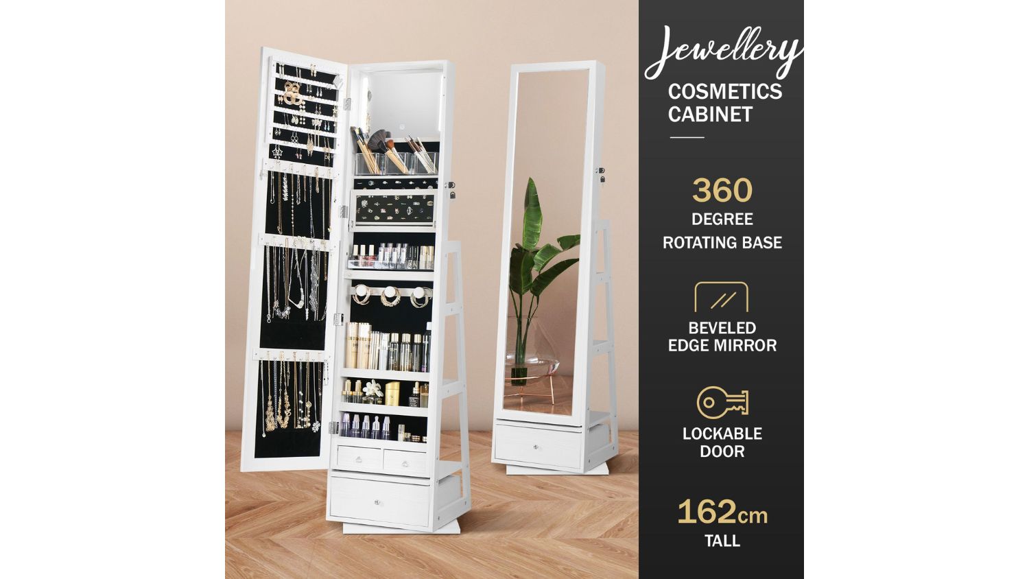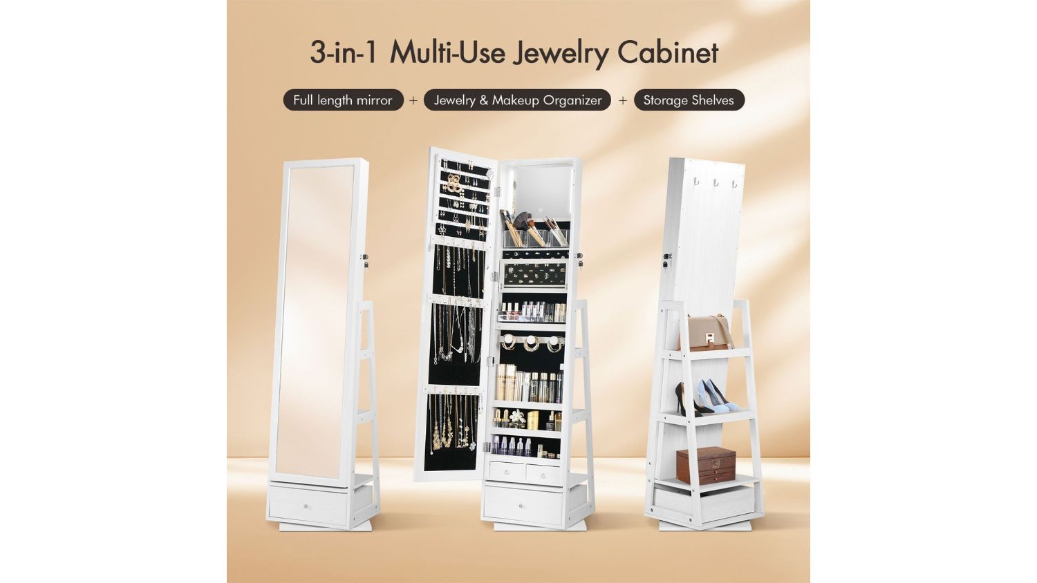 Discover a smarter way to organise your collection with the Luxsuite Rotating Jewellery Cabinet. Designed with a smooth 360° rotating base, it puts every accessory right at your fingertips. Inside, you'll find dedicated spaces for earrings, necklaces, rings, and more—along with three shelves for extra items. The built‑in smart LED makeup mirror also adds function and flair, making this cabinet both a stylish statement piece and a daily essential.