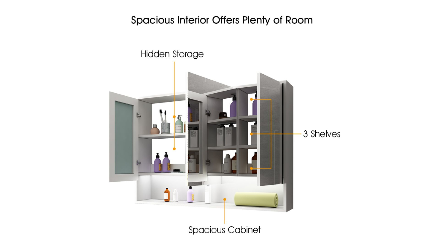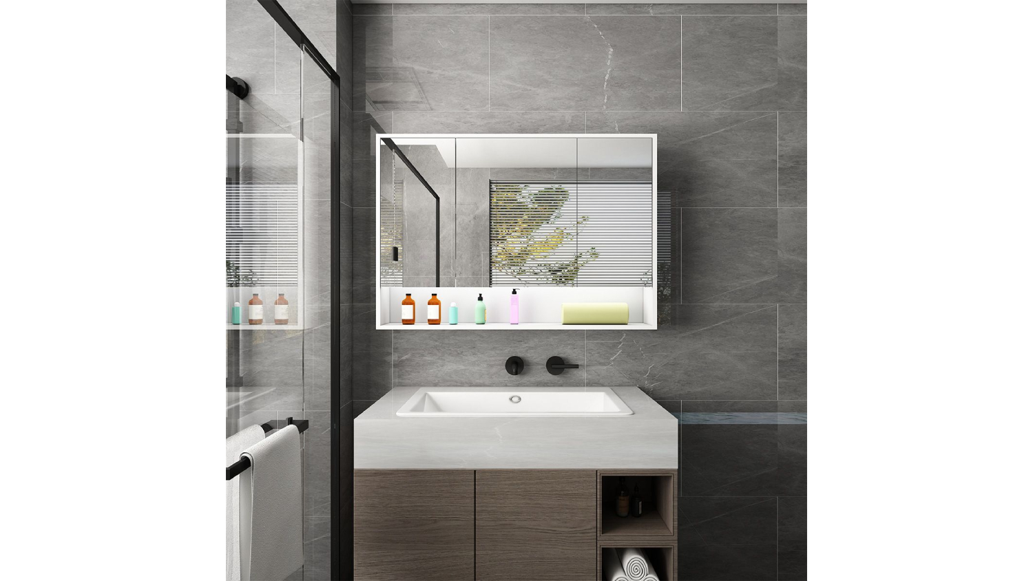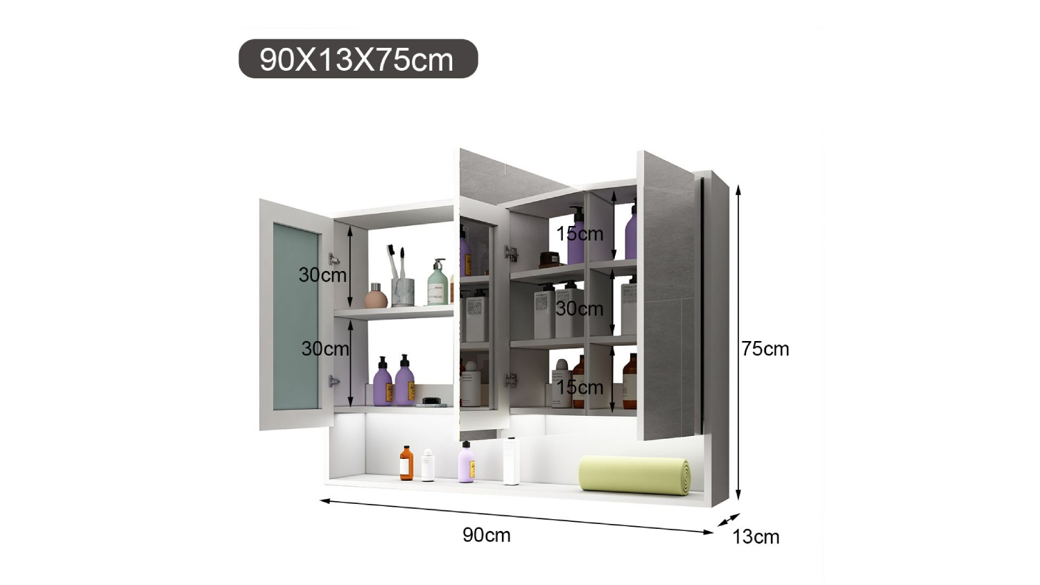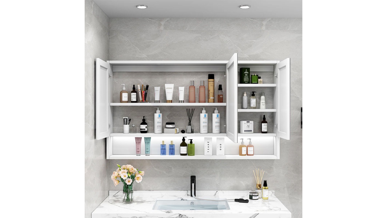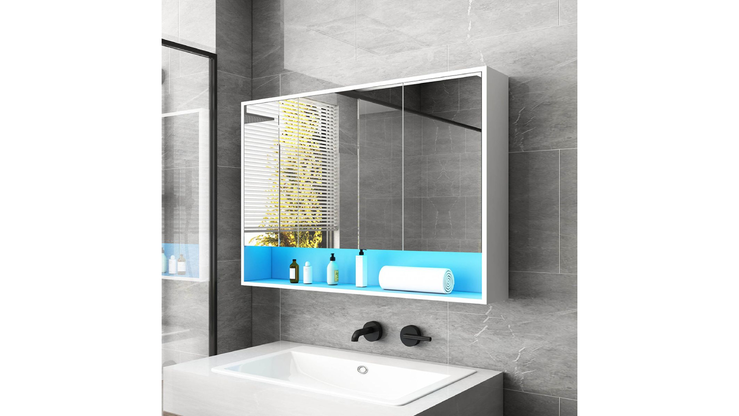 Upgrade your bathroom with the Luxsuite Toiletries Cabinet with Mirror, LED Lighting—a smart, space‑saving essential designed to keep your toilet area clutter‑free and stylish. Its 12‑colour LED lighting system creates a warm, calming glow. Featuring three high‑definition, anti‑explosion mirror doors, it’s perfect for makeup, shaving or a quick outfit check. Made from durable 15mm particle board with a clean white finish, this cabinet blends effortlessly into any modern bathroom.