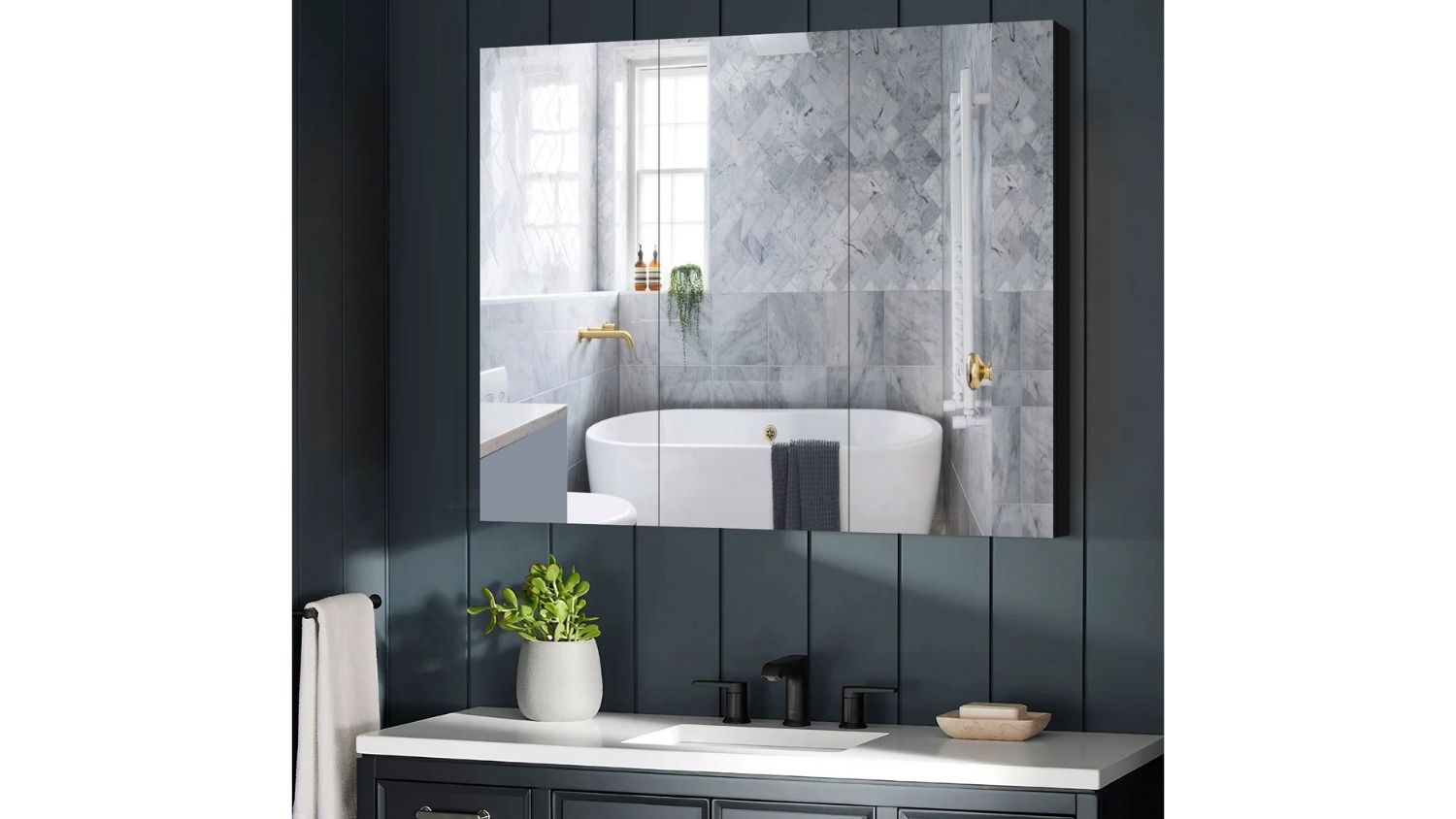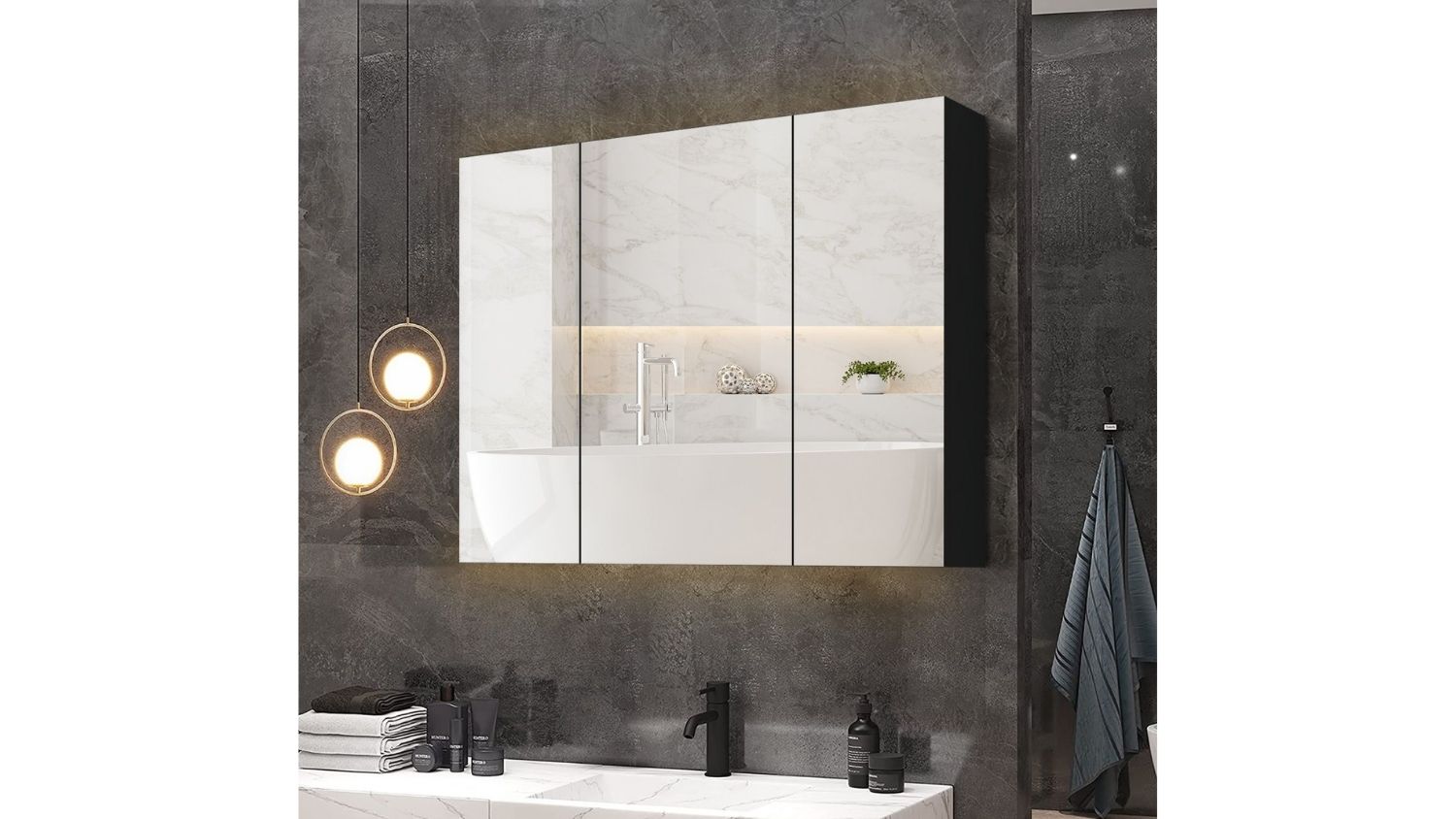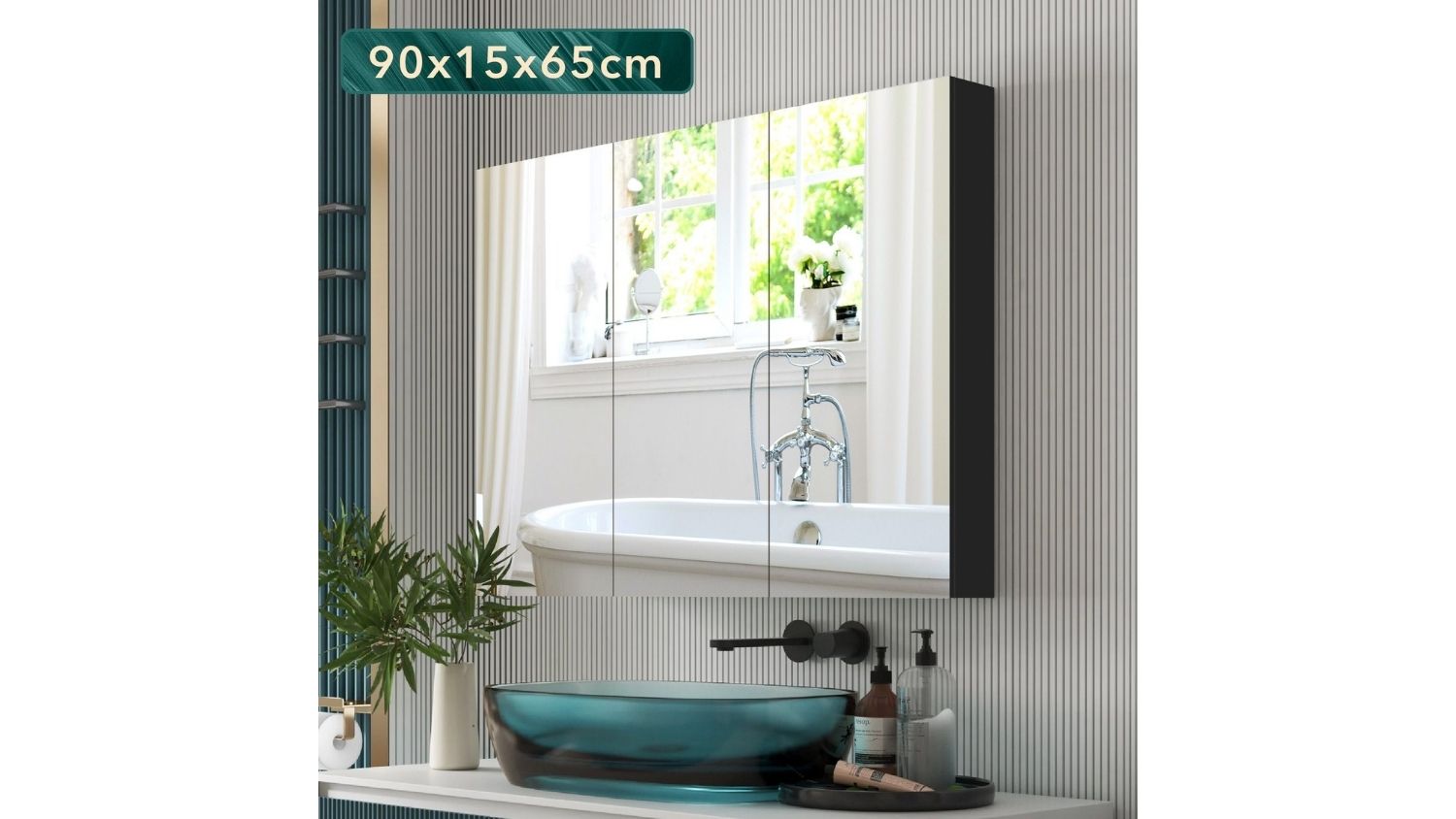 The Luxsuite Mirror Cabinet Organiser combines style and practicality with three high‑definition mirror doors that enhance your daily grooming routine. With two large shelves and three compact compartments, it keeps your bathroom essentials organised and within arm’s reach. Easy to install, clean, and maintain, this sleek cabinet adds a touch of elegance to any modern bathroom.