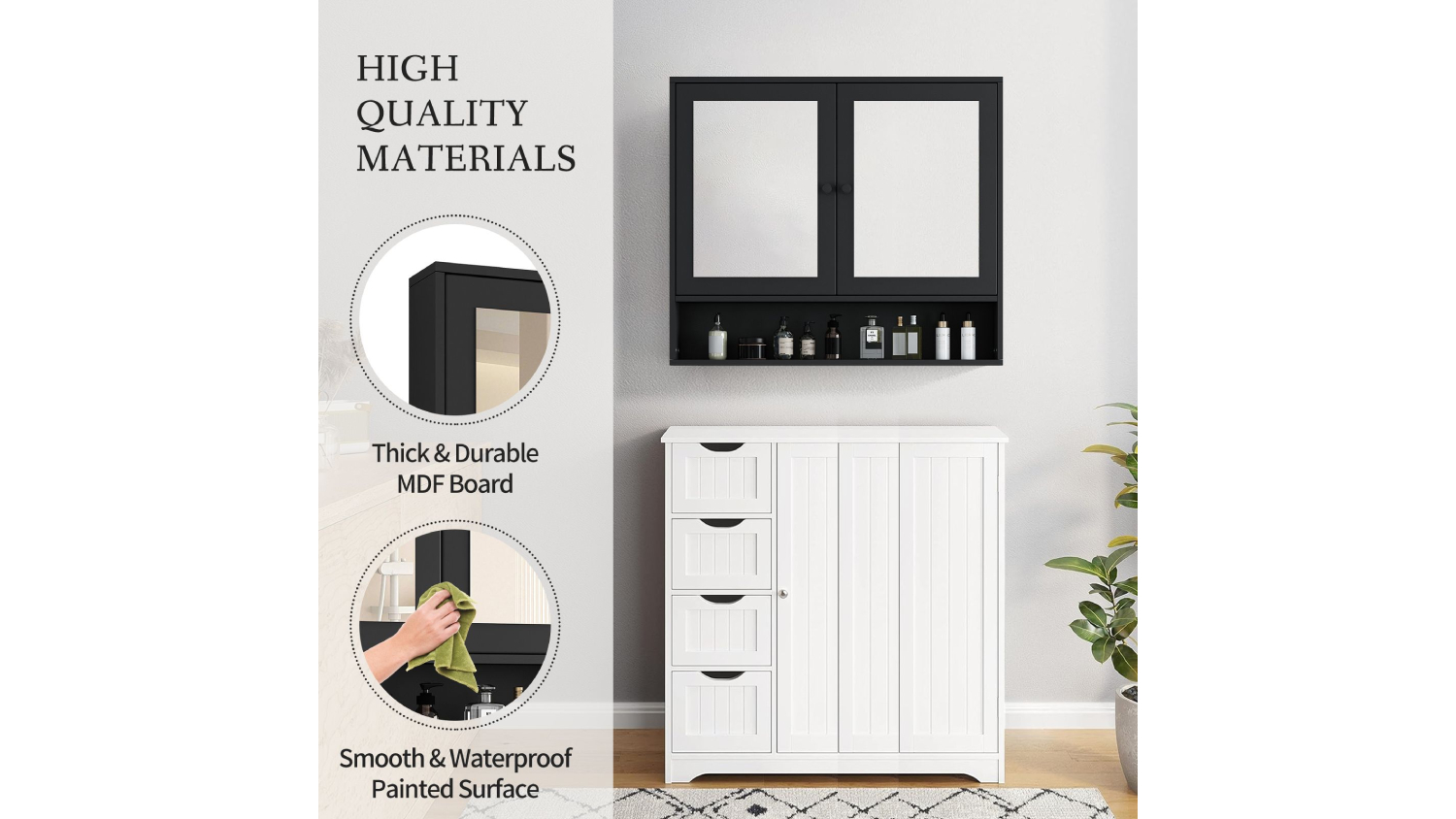 The Luxsuite Wall Mounted Toiletries Cabinet with Mirror brings smart organisation and sleek style to your bathroom. Built from strong 15mm particleboard, it’s non‑toxic, odourless, and made for everyday durability. Its twin high‑definition mirrored doors give you perfect visibility for shaving or makeup, while the hidden shelves and open bottom storage keep your essentials tidy and within reach.