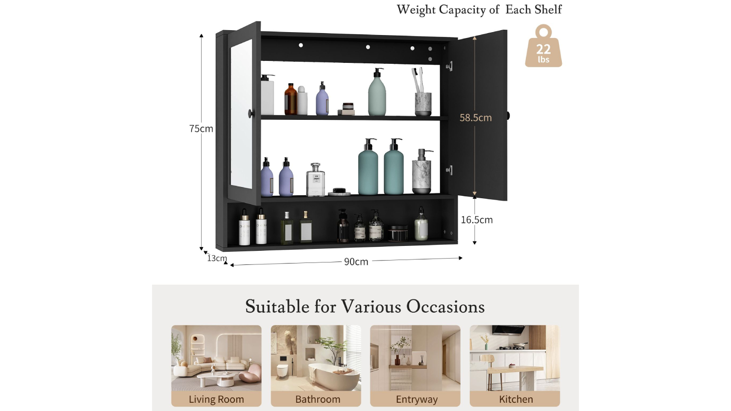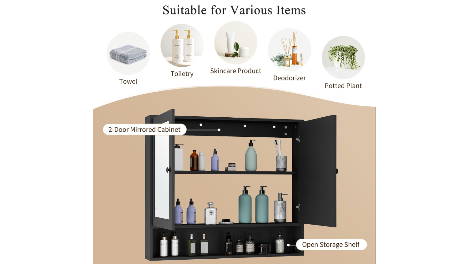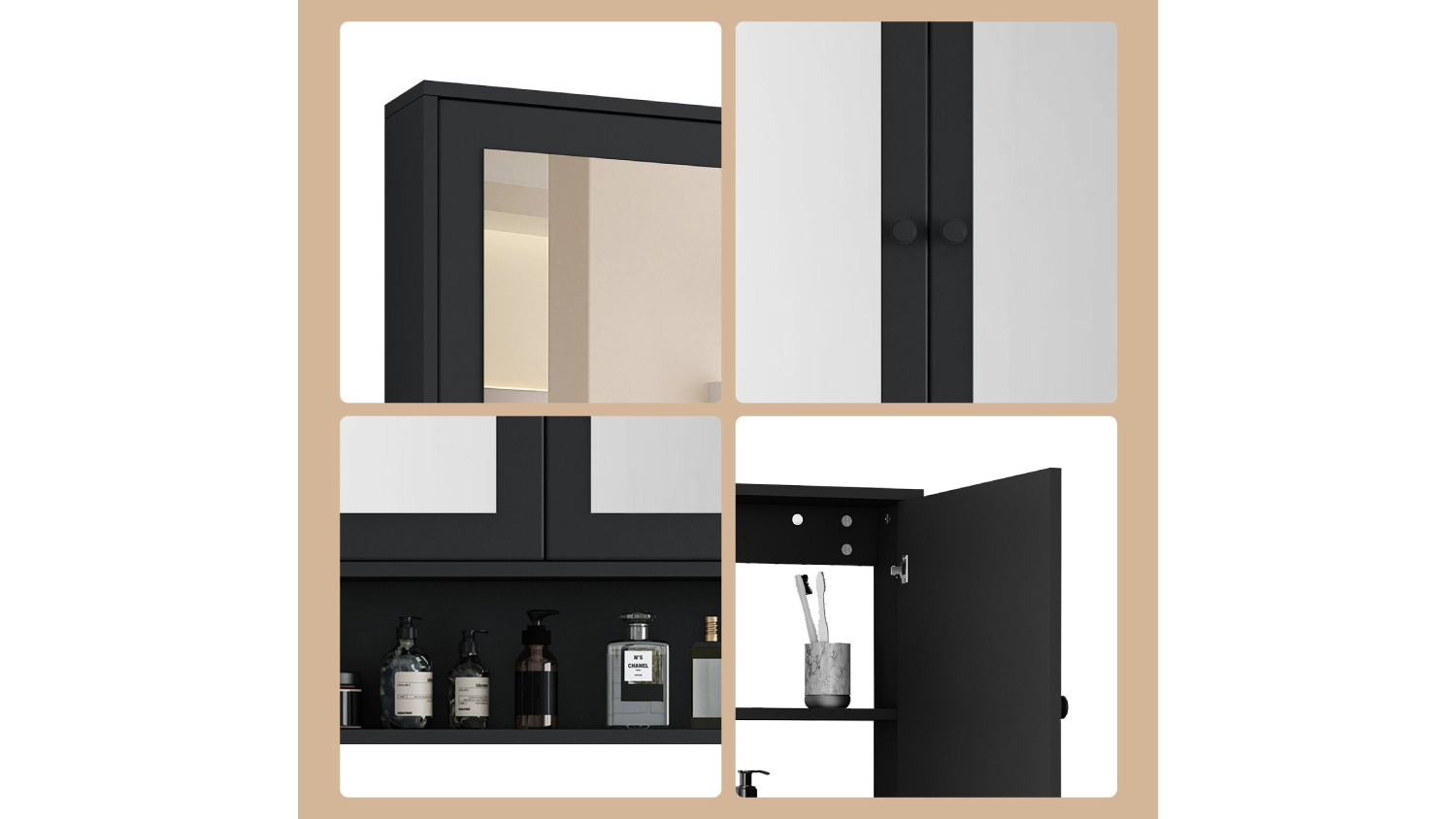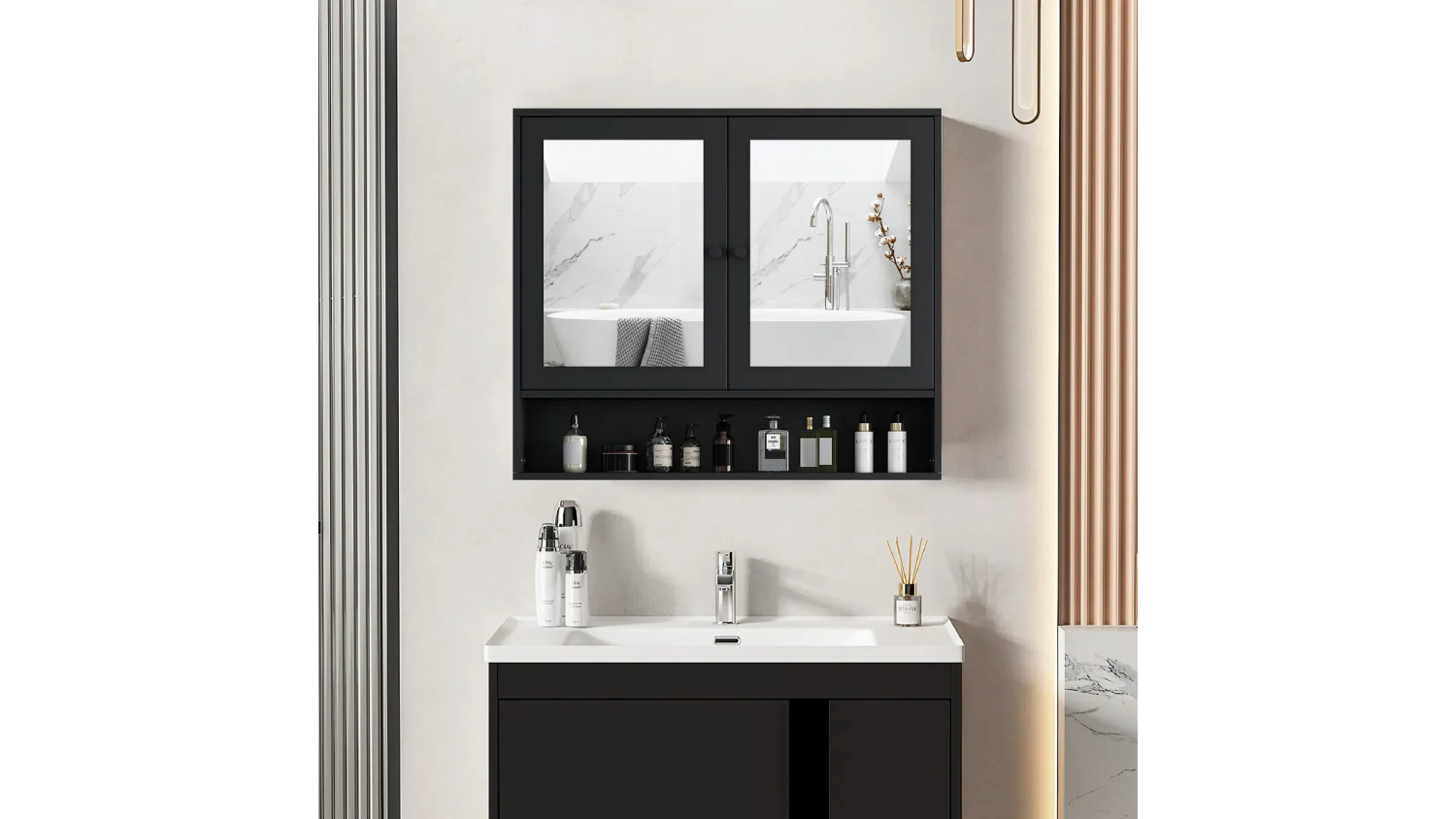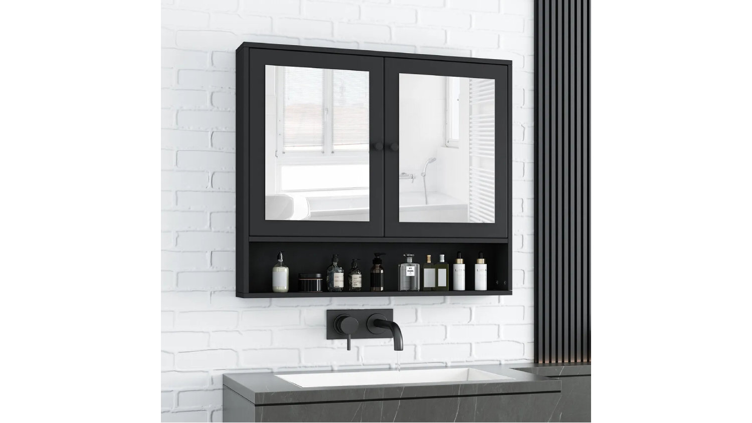 Luxsuite Wall Mounted Toiletries Cabinet with Mirror - Black